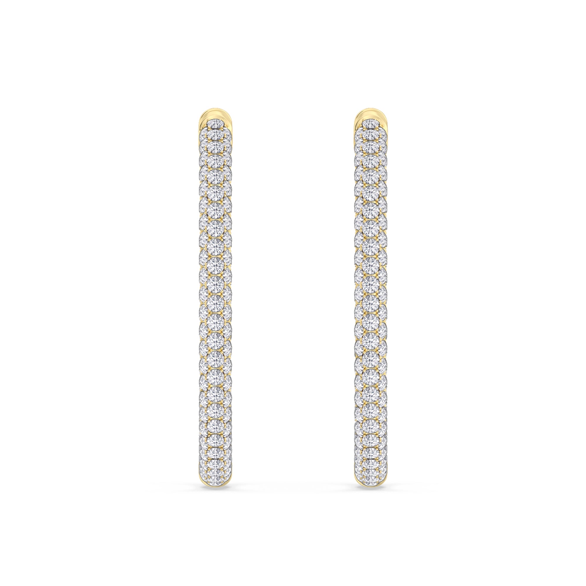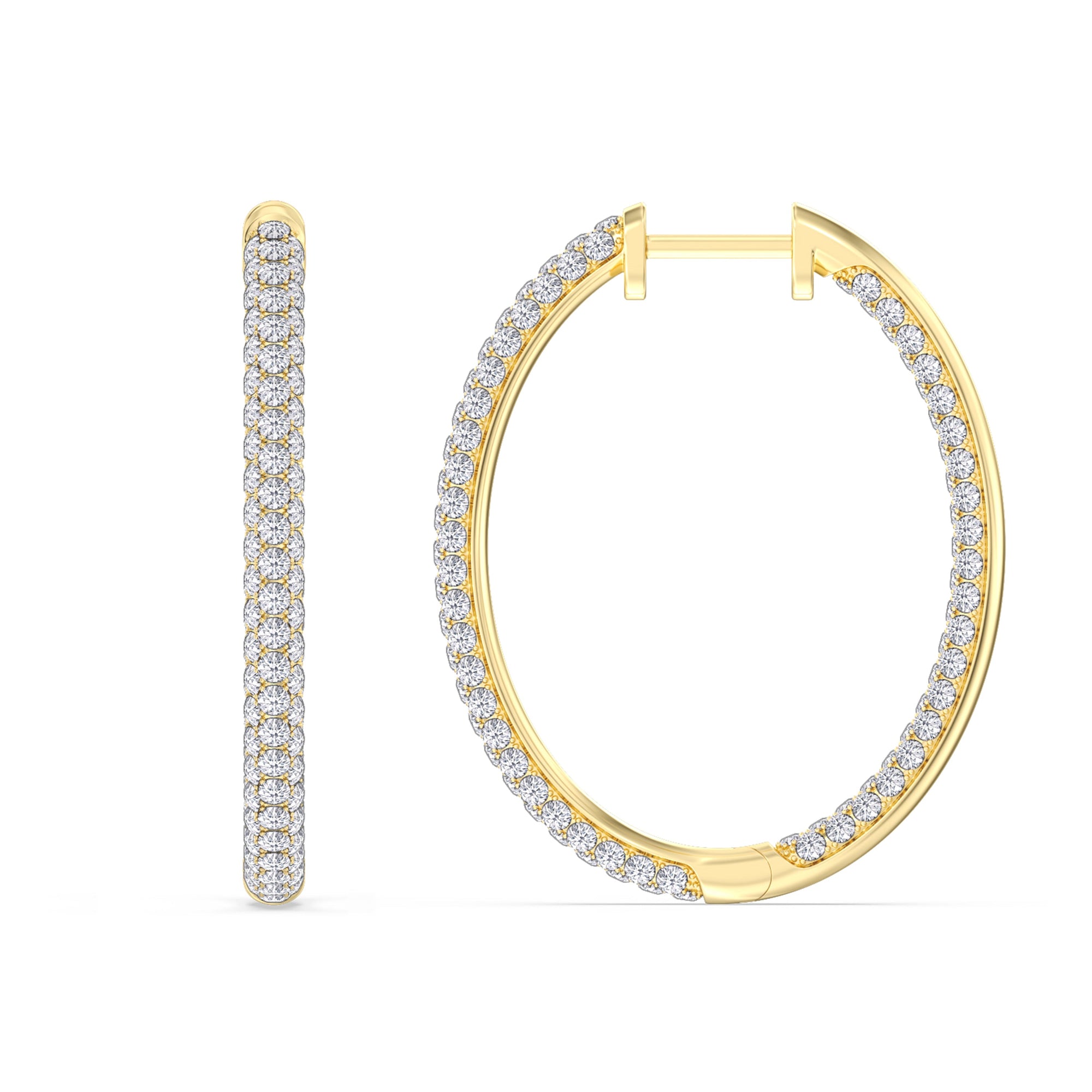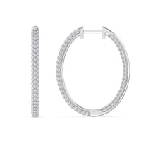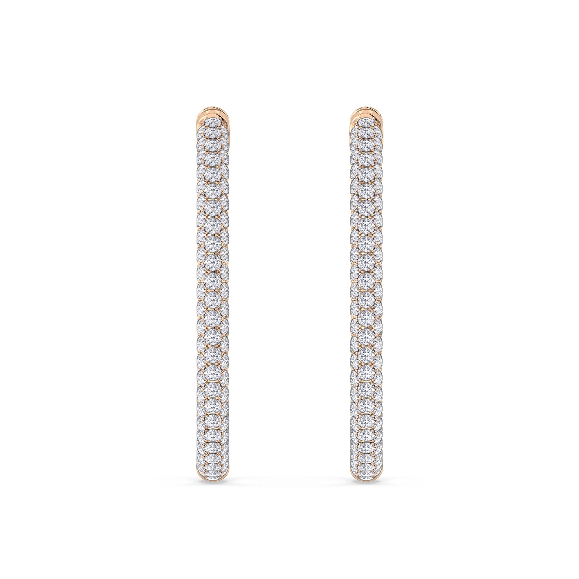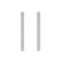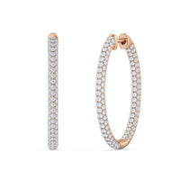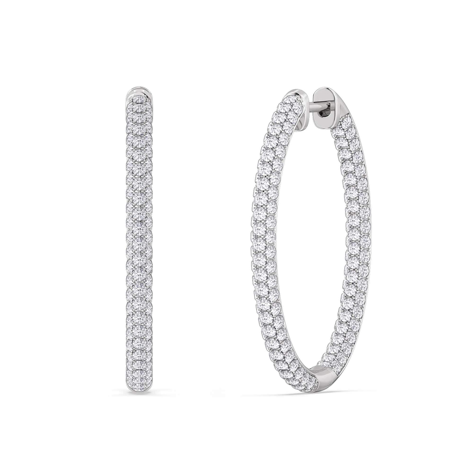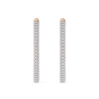 These large yet delicate hoop earrings, fully covered with round diamonds, are what you need for a look that is never overdone but always stunning. With a bigger diameter, they indeed draw attention, yet they don't distract or dominate.