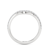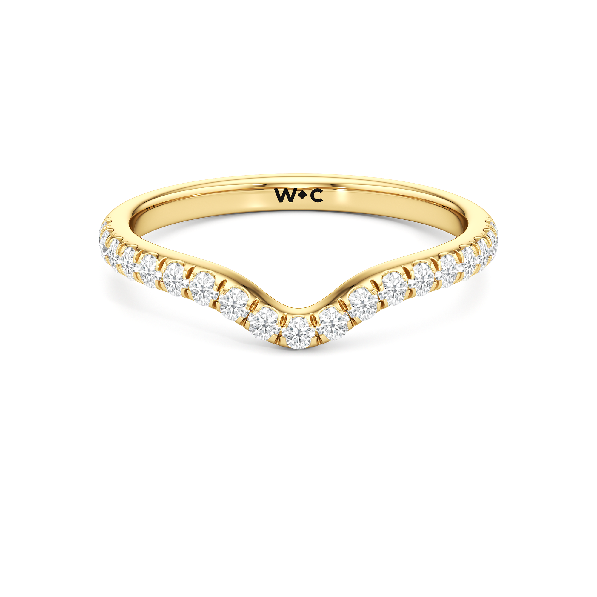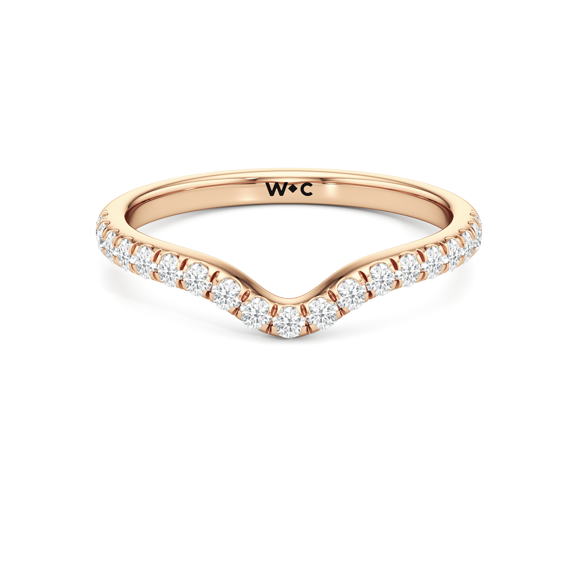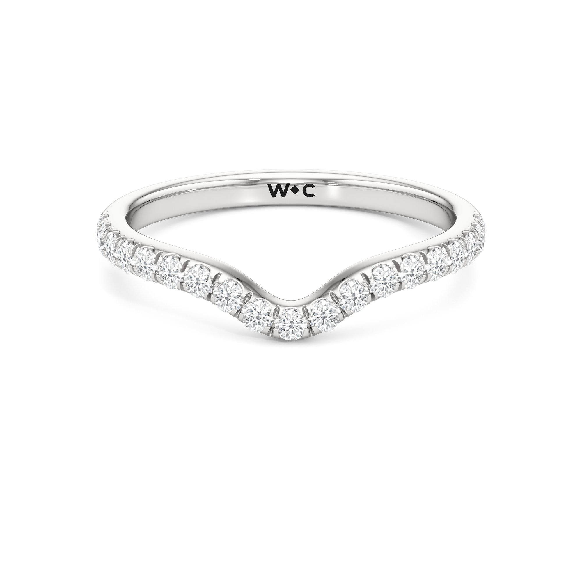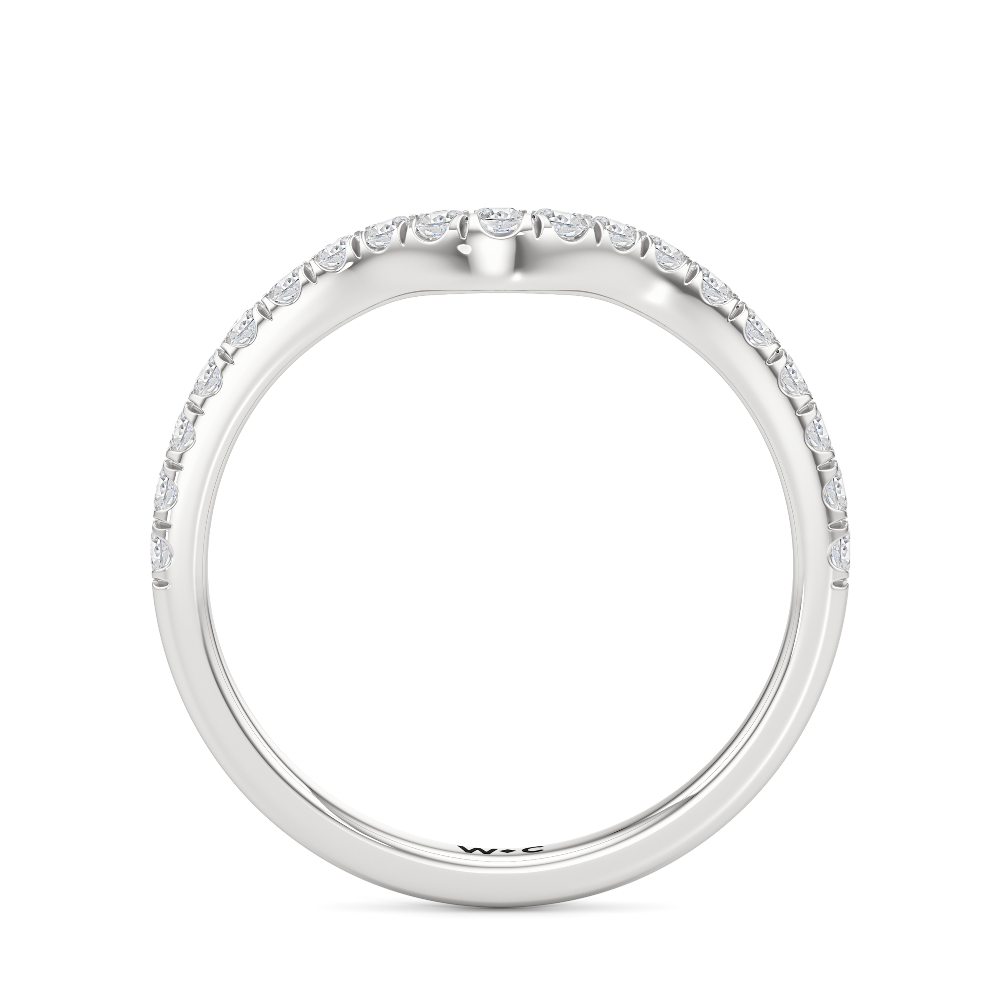 This curved diamond set wedding band is perfectly contoured to complement our elegance half moon side stone engagement ring for a simple and sophisticated look.