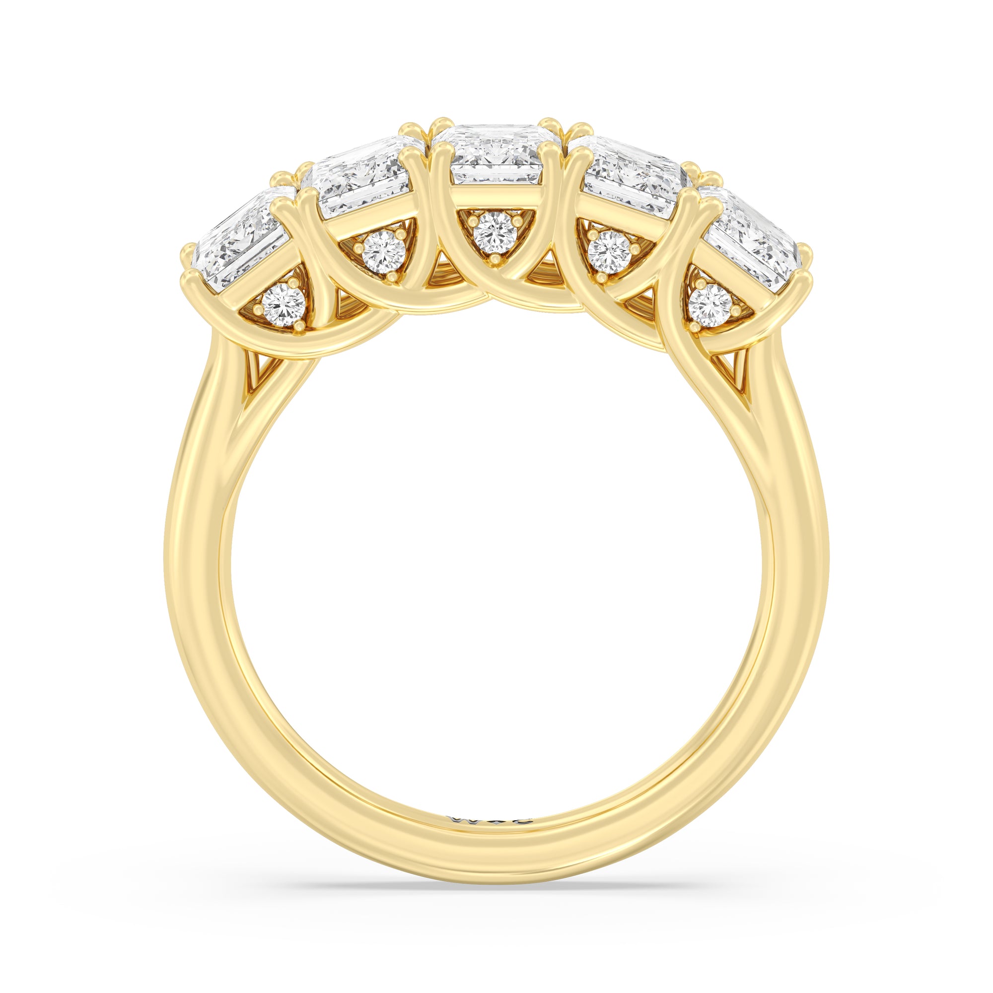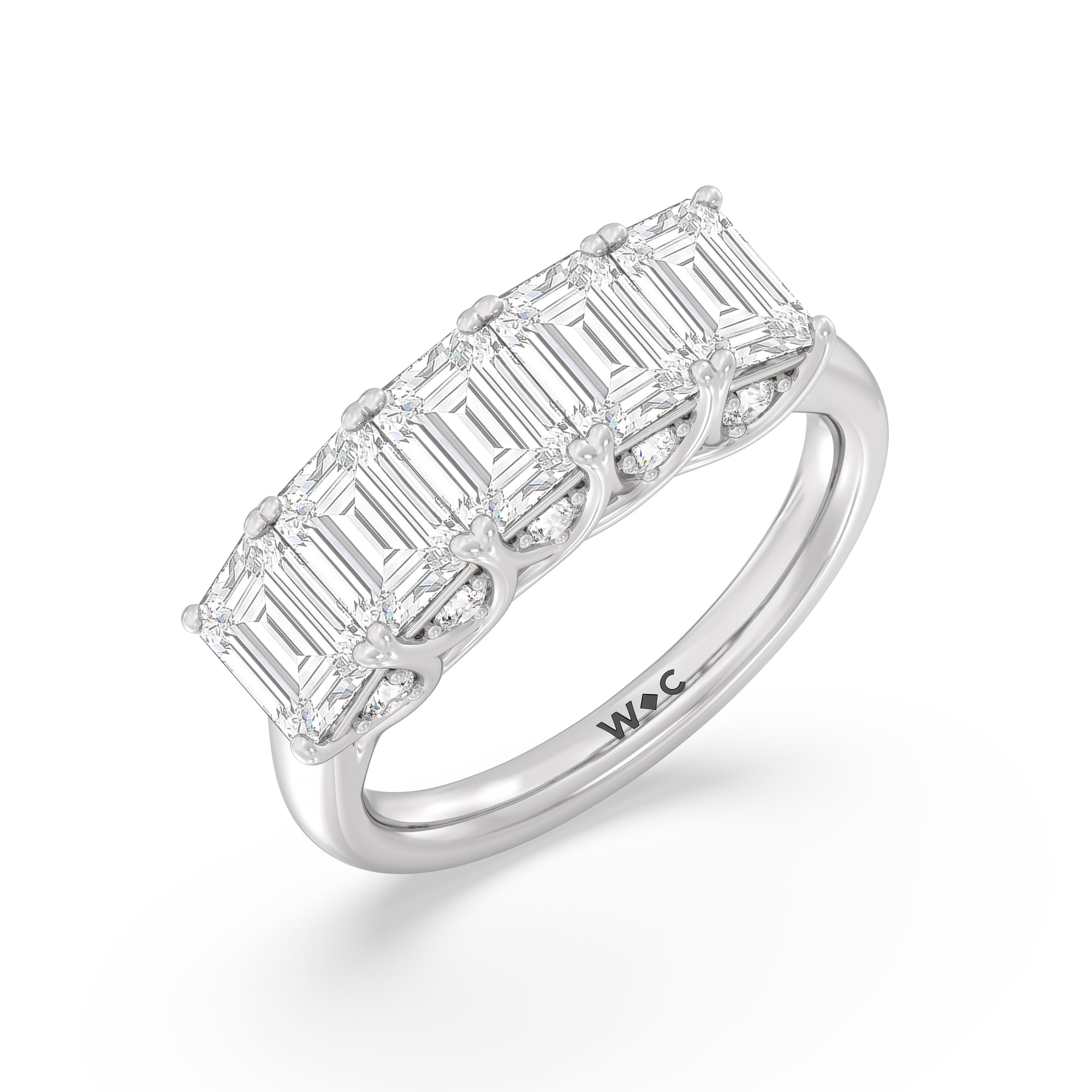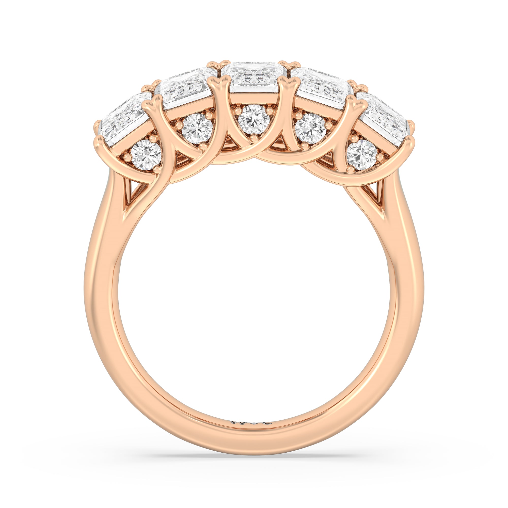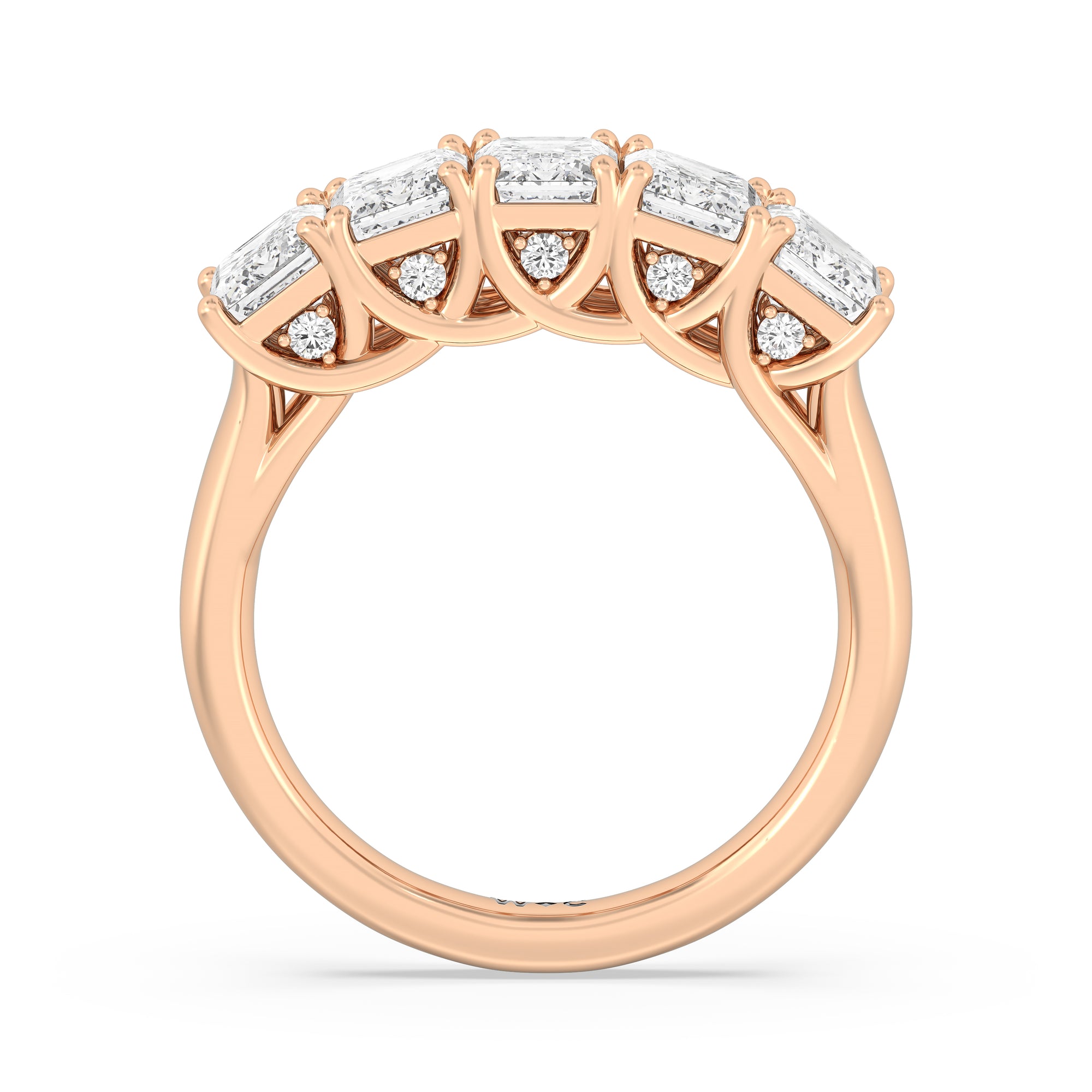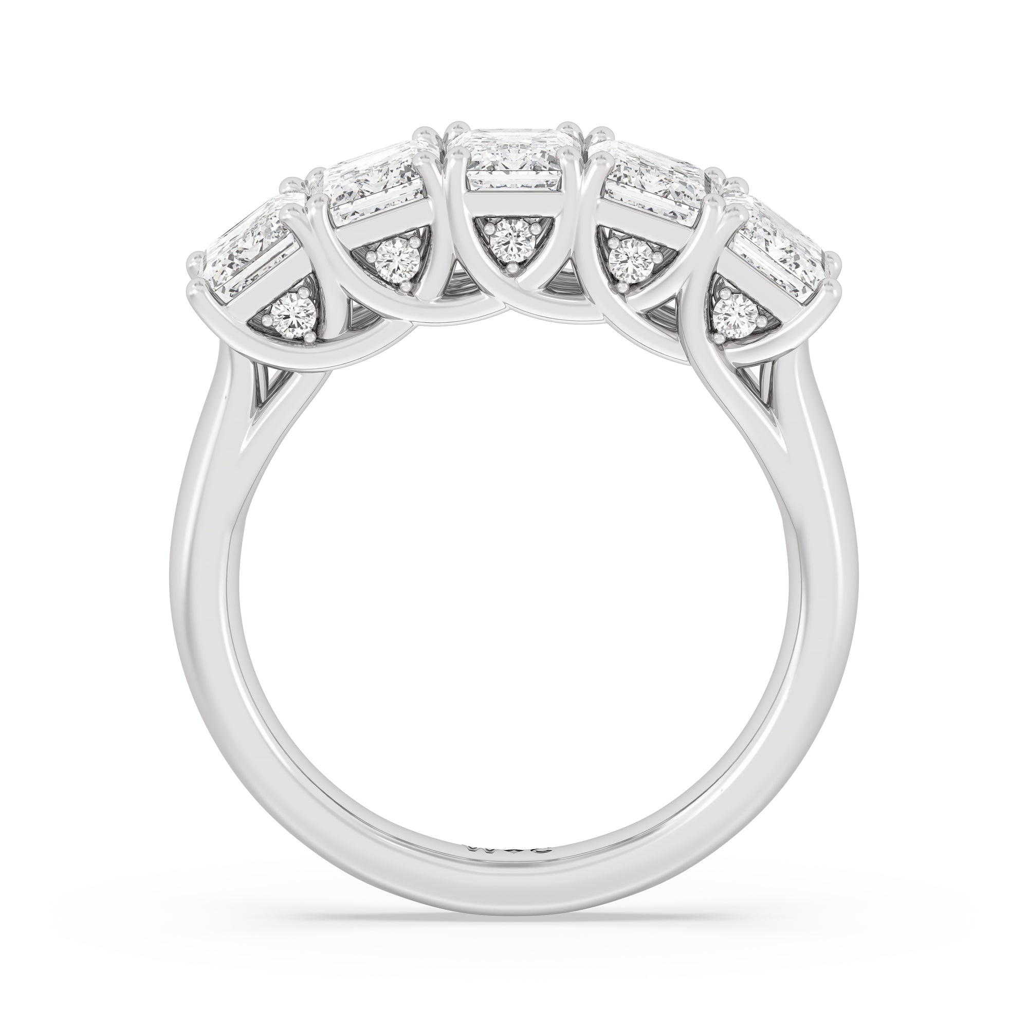 The ultimate symbol of love that only grows and grows. This diamond anniversary band features five meticulously selected diamonds on a beautiful trellis setting. As the interwoven prongs secure the stones in place, they also elevate the ring's appeal. The decorative latticework serves as a symbol of unity and harmony, making this ring the perfect emblem of love that grows stronger with each passing stage.