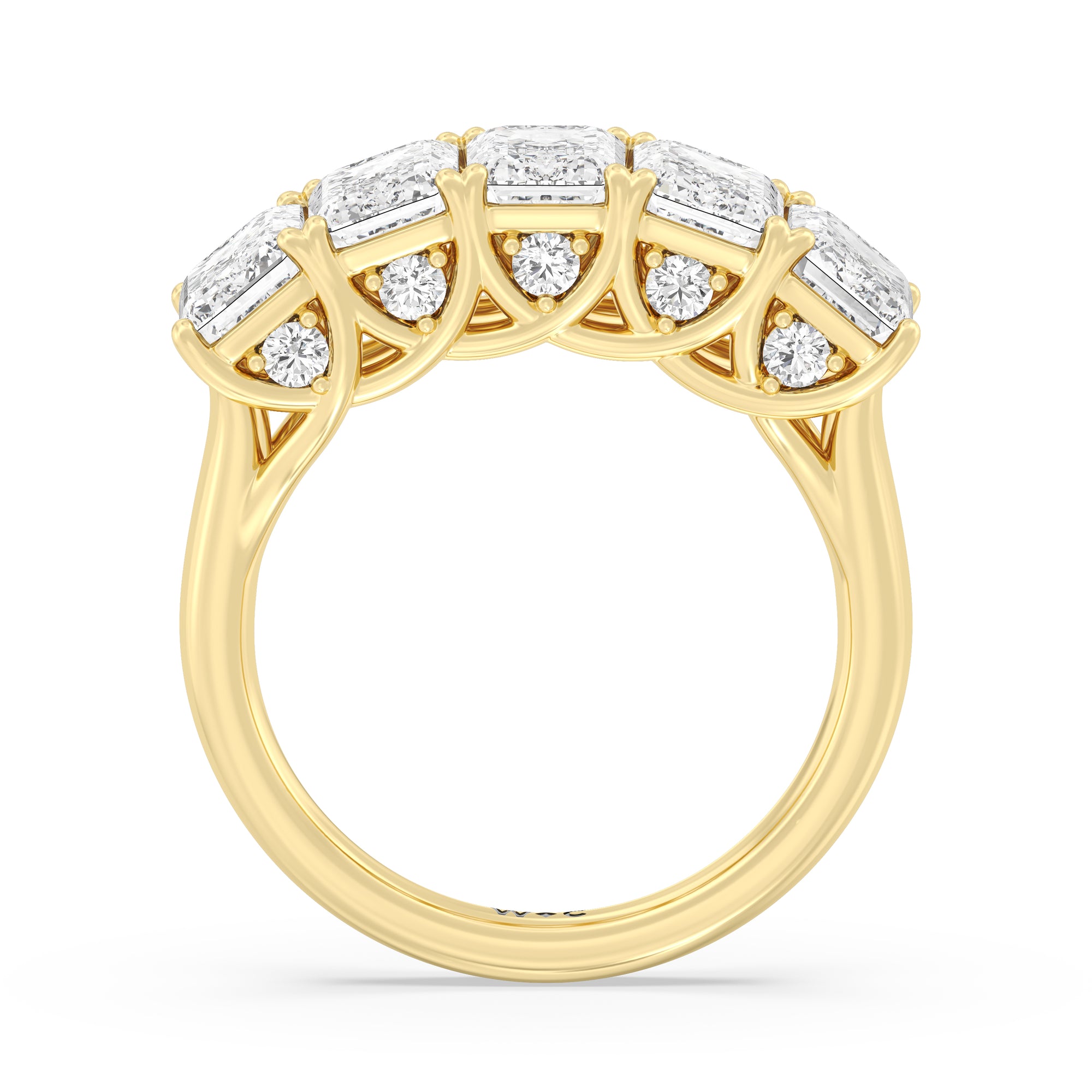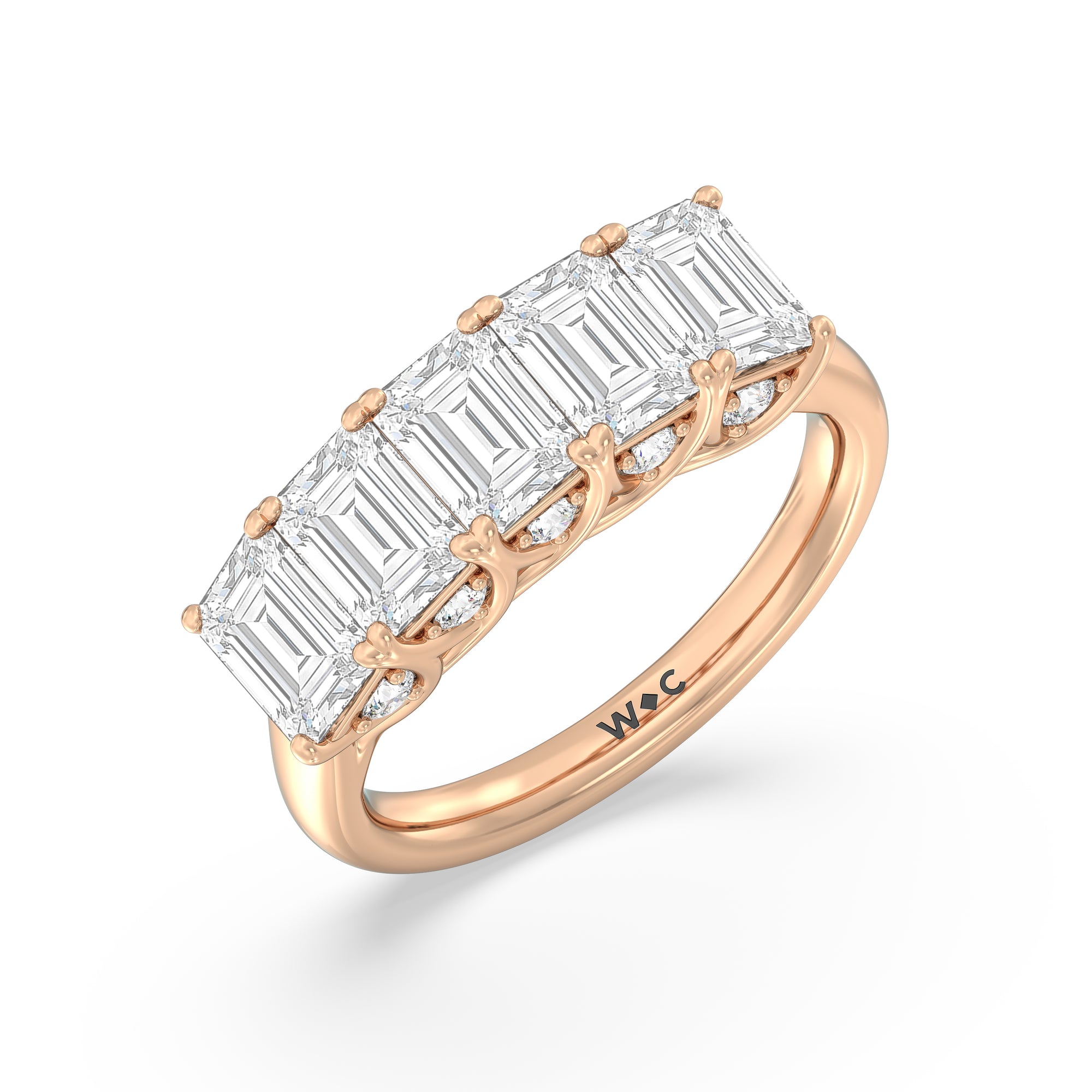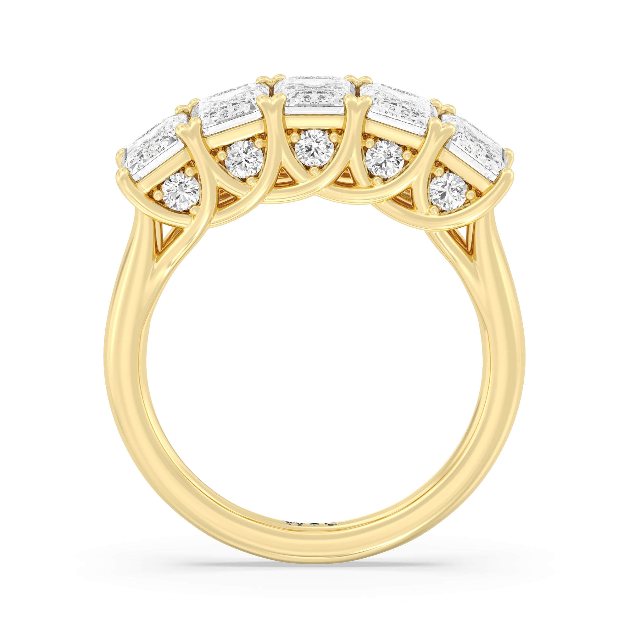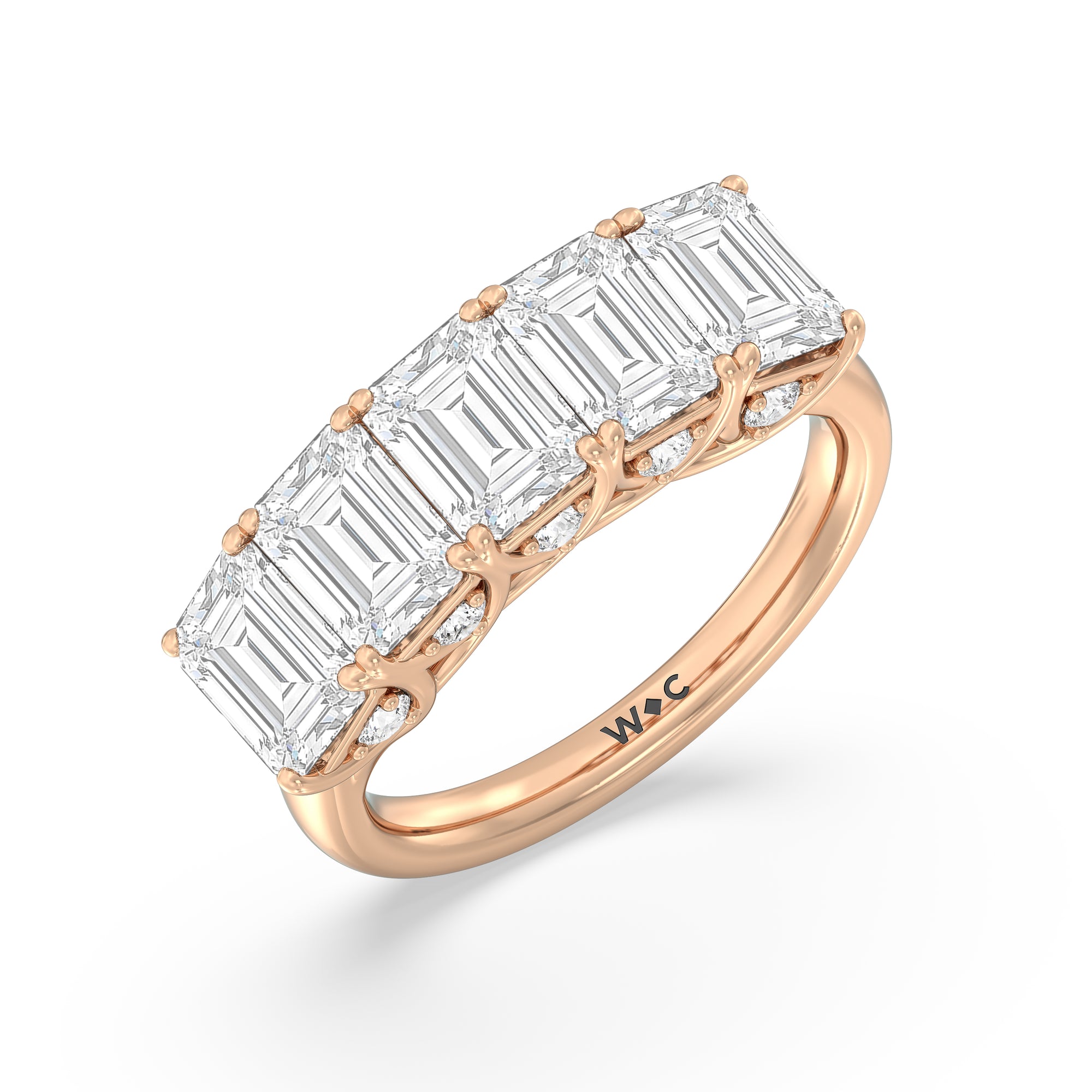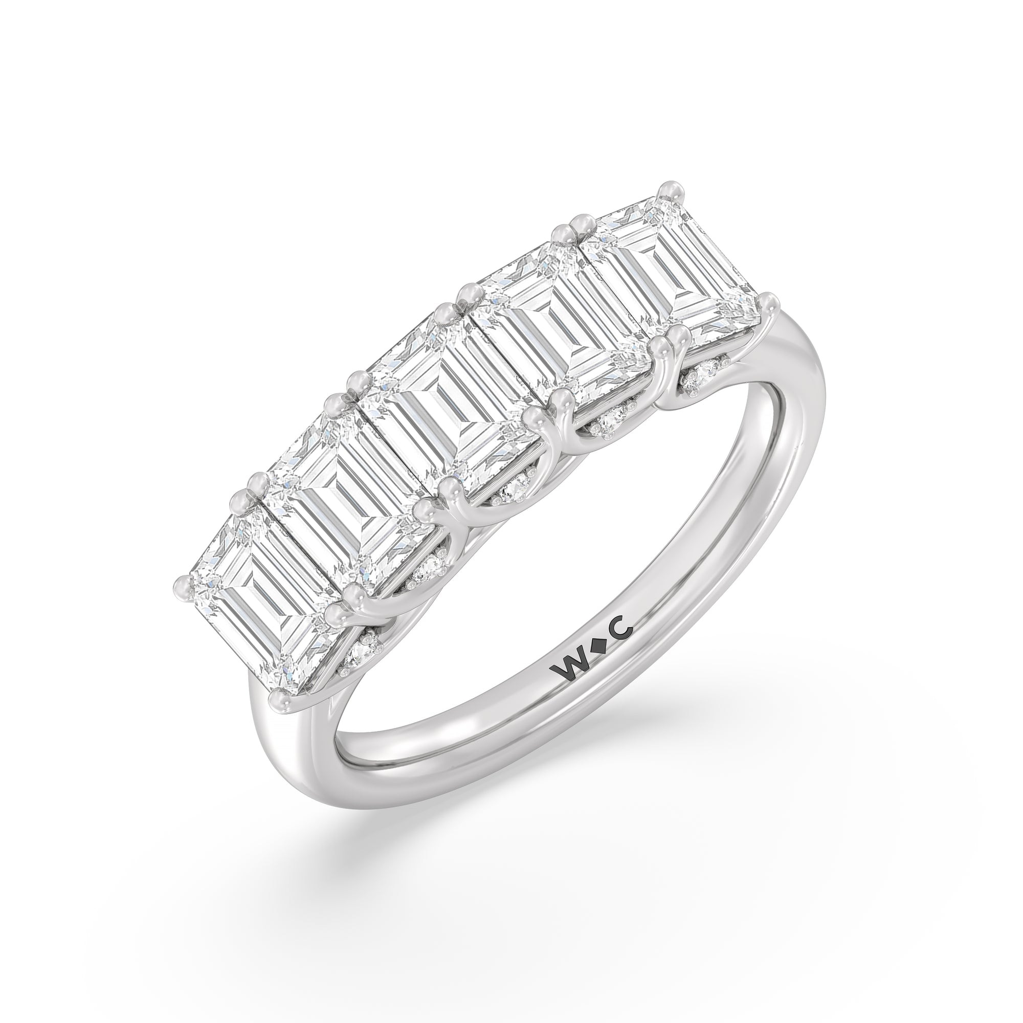 The ultimate symbol of love that only grows and grows. This diamond anniversary band features five meticulously selected diamonds on a beautiful trellis setting. As the interwoven prongs secure the stones in place, they also elevate the ring's appeal. The decorative latticework serves as a symbol of unity and harmony, making this ring the perfect emblem of love that grows stronger with each passing stage.