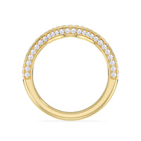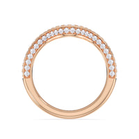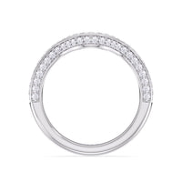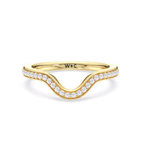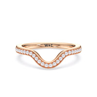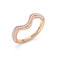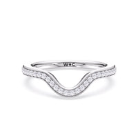 This curved diamond set wedding band is perfectly contoured to complement our elegance hidden halo cross bridge engagement ring for a simple and sophisticated look.