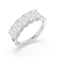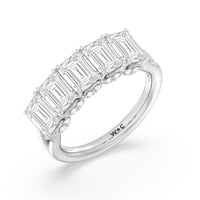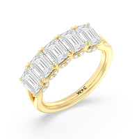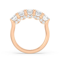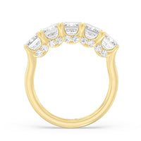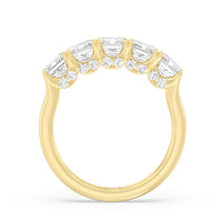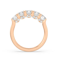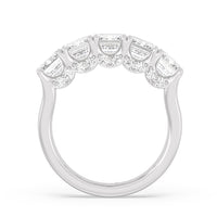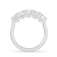 Offering expressive brilliance, this five-stone anniversary band makes the perfect marker to celebrate a cherished milestone. It features a split shank with five diamonds, each detailed with a hidden halo. The petite stones that are visible only on side views add an extra layer of depth to the ring's shine, offering the perfect reminder to celebrate not just the length but also the depth of your relationship.