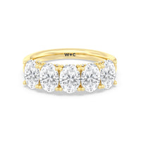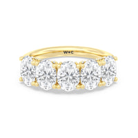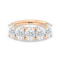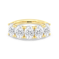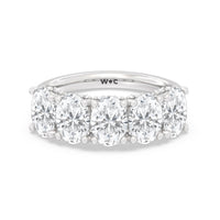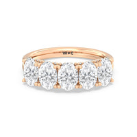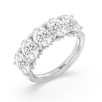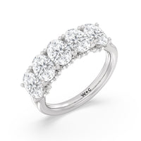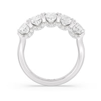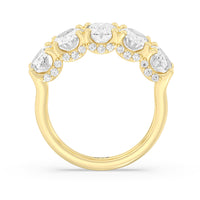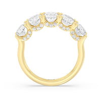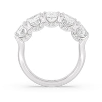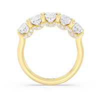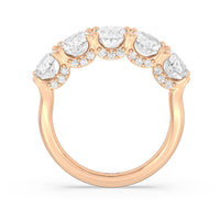Offering expressive brilliance, this five-stone anniversary band makes the perfect marker to celebrate a cherished milestone. It features a split shank with five diamonds, each detailed with a hidden halo. The petite stones that are visible only on side views add an extra layer of depth to the ring's shine, offering the perfect reminder to celebrate not just the length but also the depth of your relationship.