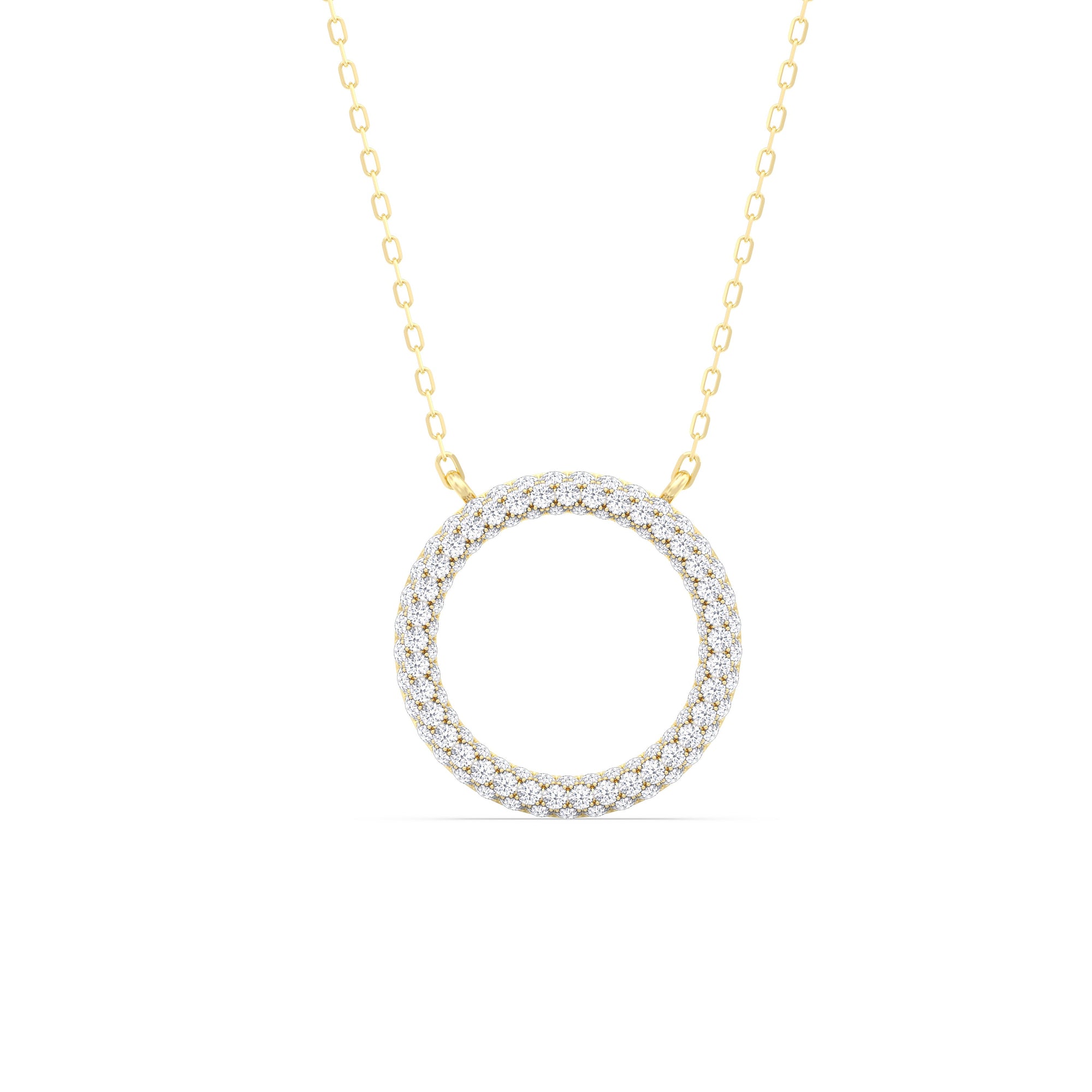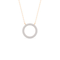 This diamond pendant offers brilliance and style that will feel right at home in any setting. Petite round diamonds, carefully chosen for their fire and scintillation, trace the circle pendant's outline.
