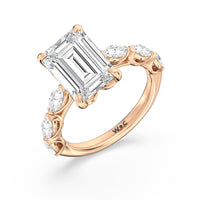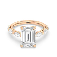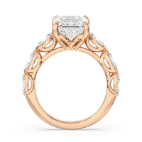 Elegance Marquise Accent Studded Engagement Ring with Emerald Cut Diamond in 14KT Rose Gold view 6