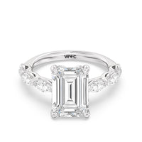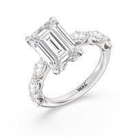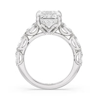 Elegance Marquise Accent Studded Engagement Ring with Emerald Cut Diamond in 14KT Platinum view 6