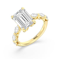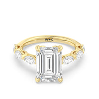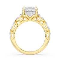 Elegance Marquise Accent Studded Engagement Ring with Emerald Cut Diamond in 14KT Yellow Gold view 6