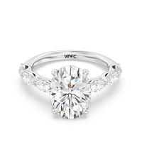Elegance Marquise Accent Studded Engagement Ring with Oval Cut Diamond in 14KT Platinum view 6