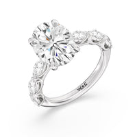 Elegance Marquise Accent Studded Engagement Ring with Oval Cut Diamond in 14KT Platinum view 5