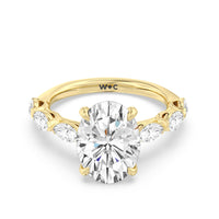Elegance Marquise Accent Studded Engagement Ring with Oval Cut Diamond in 14KT Yellow Gold view 4