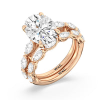 Elegance Marquise Accent Studded Engagement Ring with Oval Cut Diamond in 14KT Rose Gold view 6