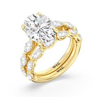 Elegance Marquise Accent Studded Engagement Ring with Oval Cut Diamond in 14KT Yellow Gold view 6