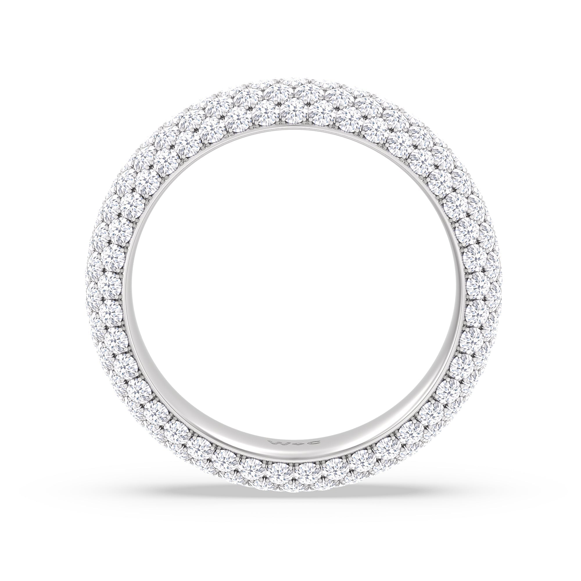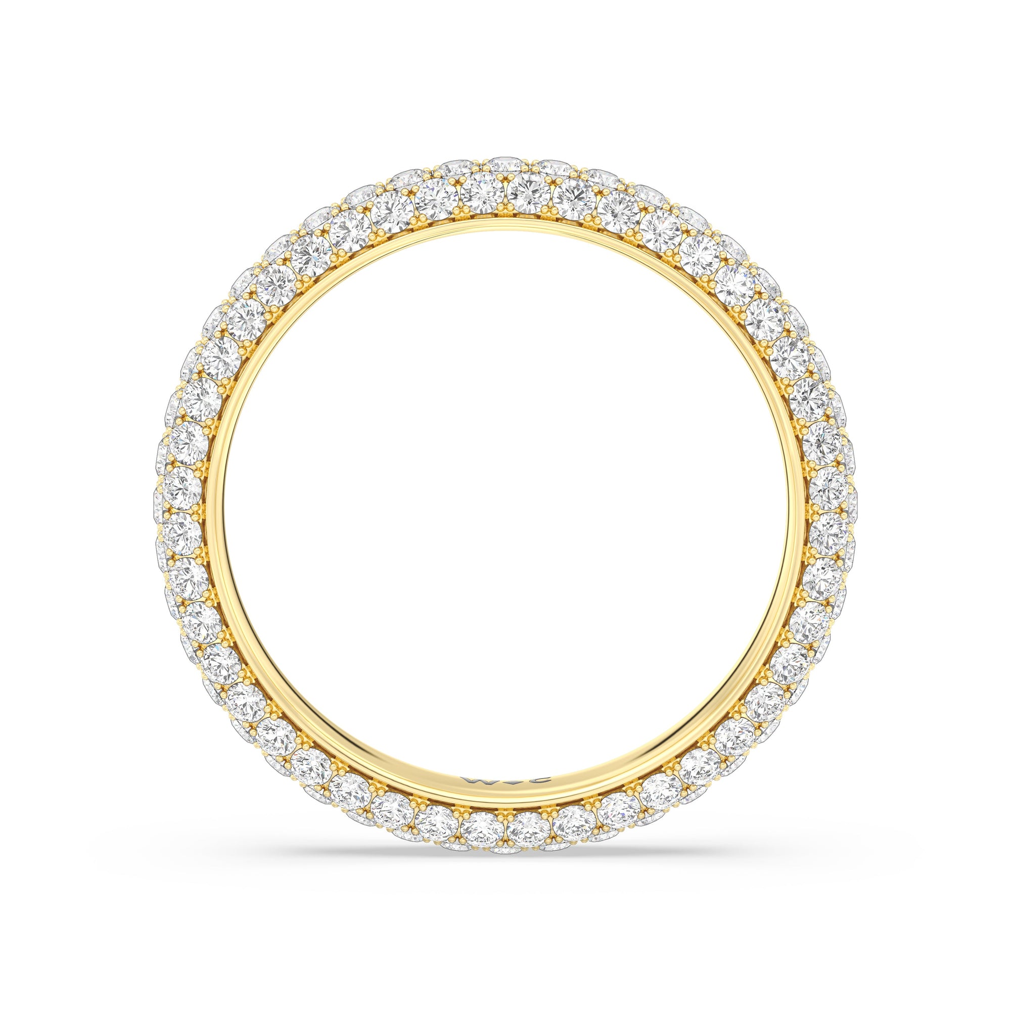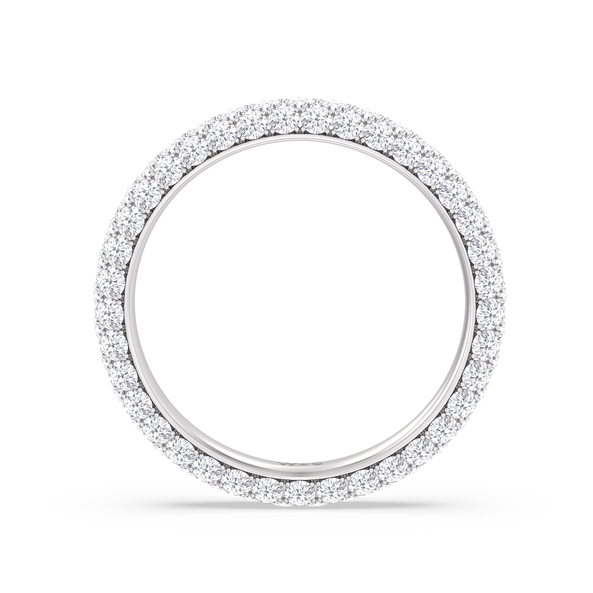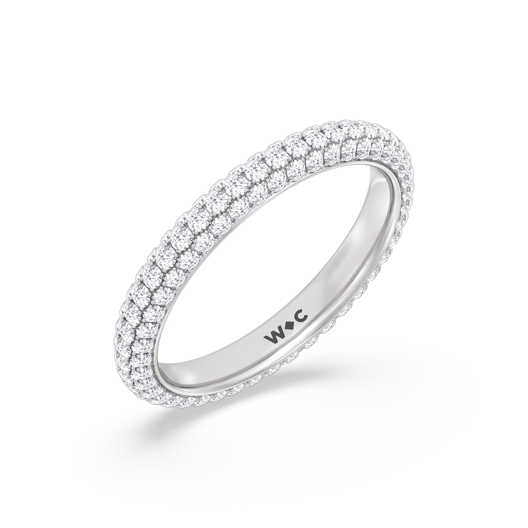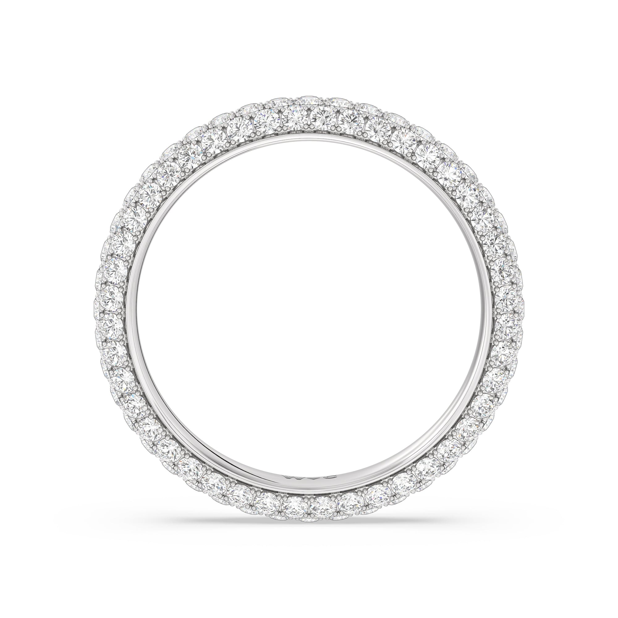 A powerfully elegant diamond eternity ring to gift to your special someone, or to yourself. The band has its entire circumference meticulously adorned with three rows of round diamonds in a pavé setting. It's the perfect ring to seal off any look, or to seal your love story.
