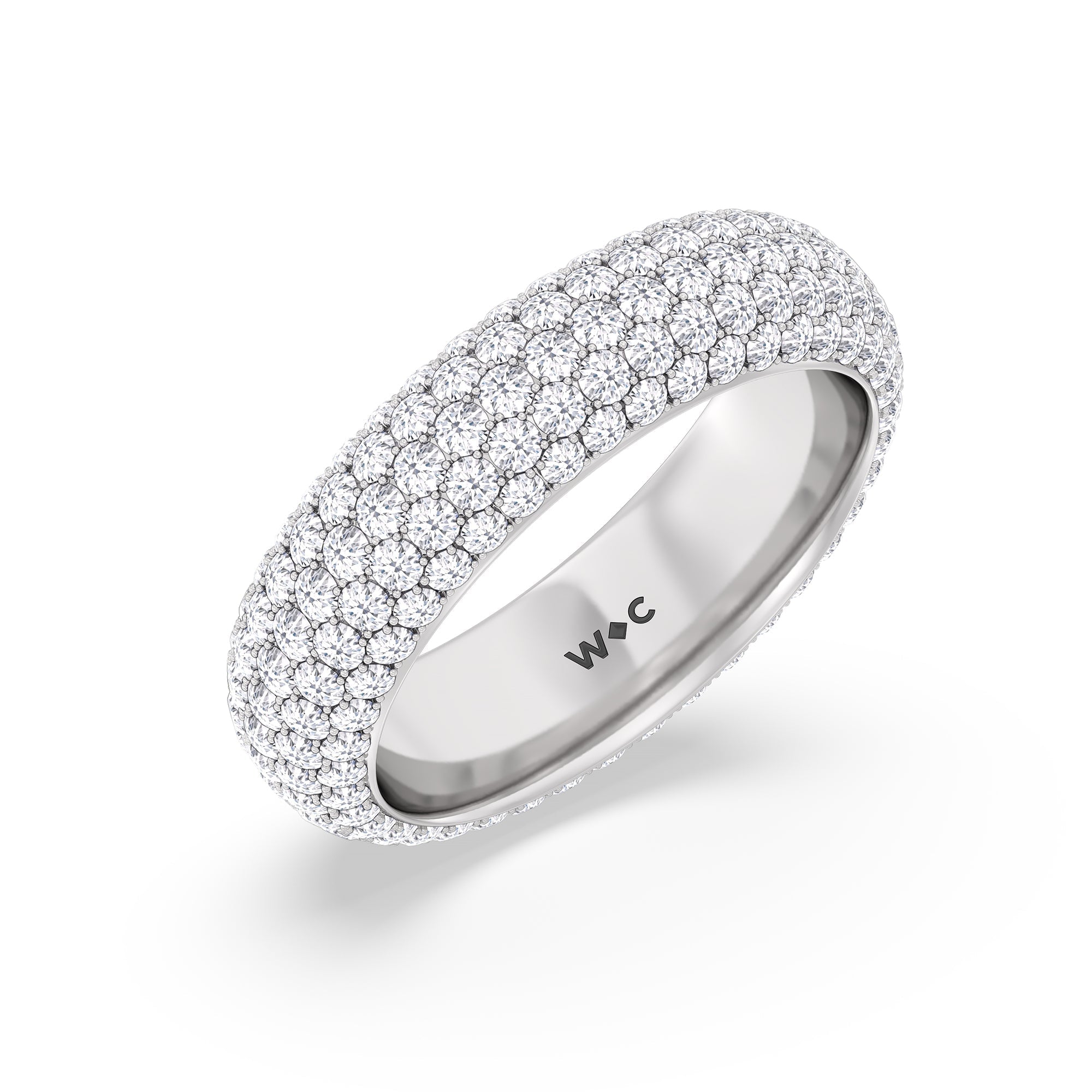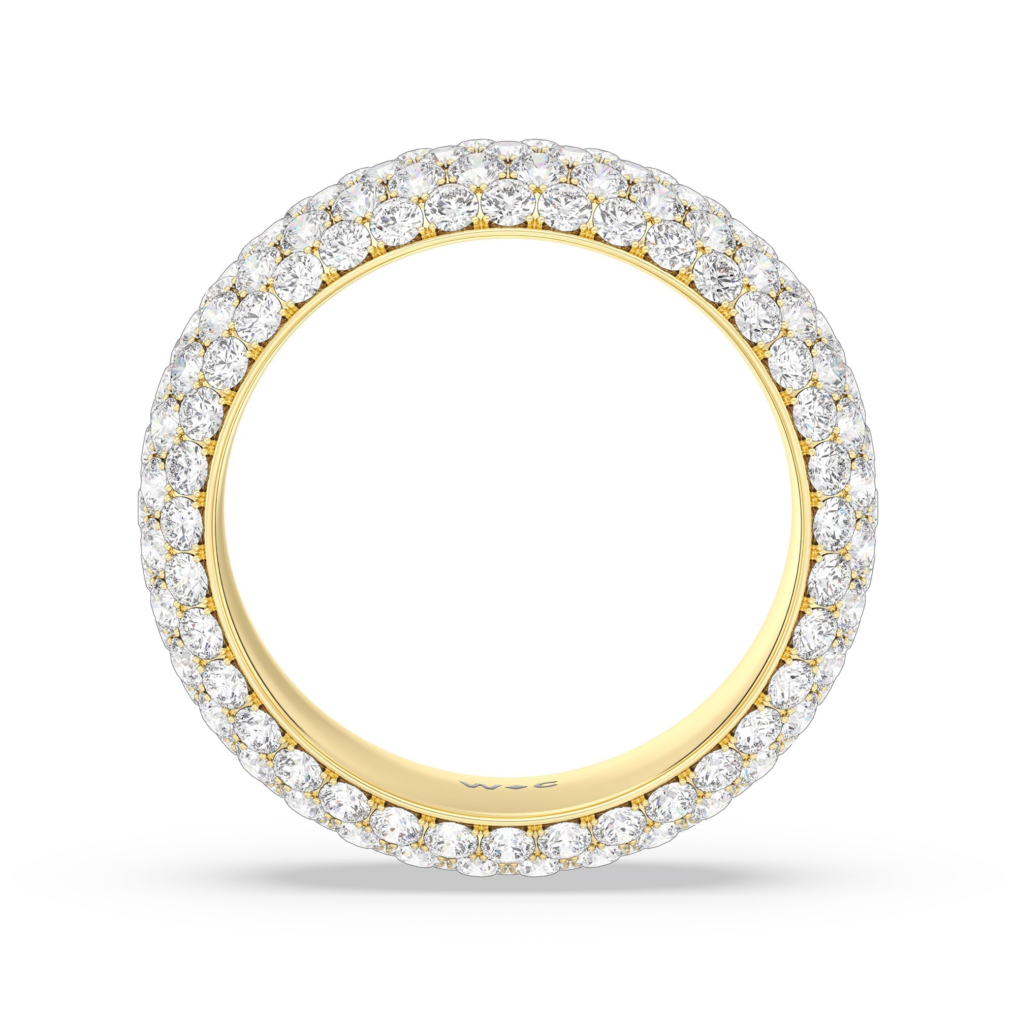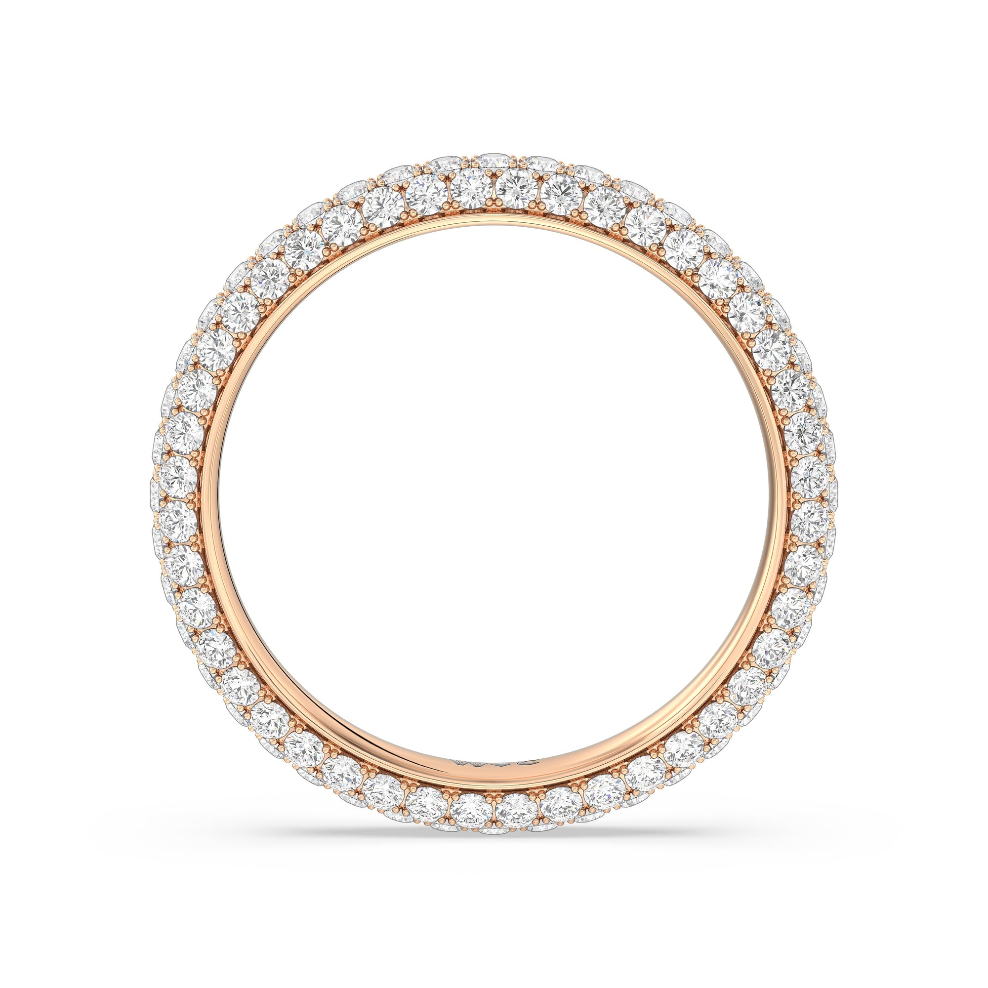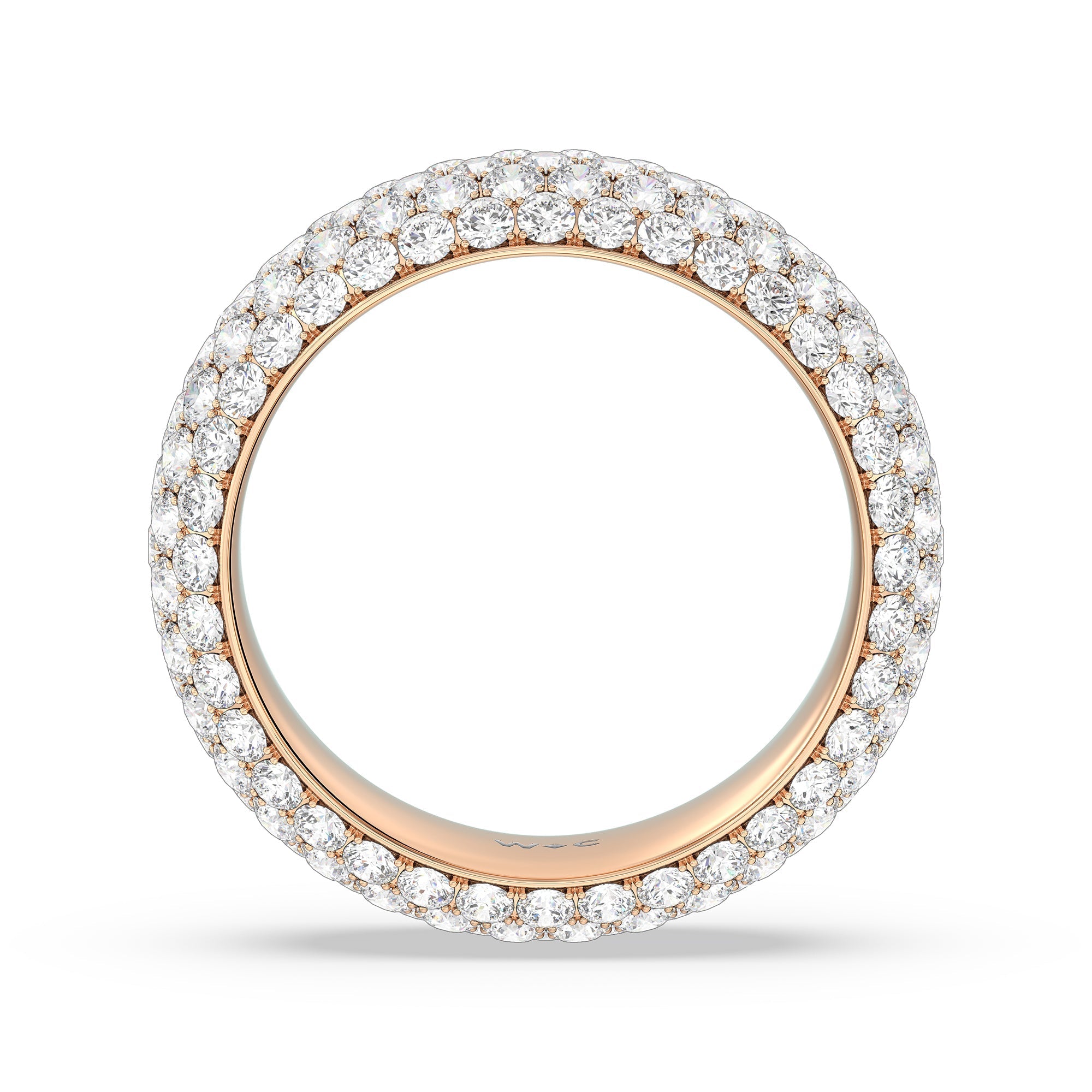 A powerfully elegant diamond eternity ring to gift to your special someone, or to yourself. The band has its entire circumference meticulously adorned with three rows of round diamonds in a pavé setting. It's the perfect ring to seal off any look, or to seal your love story.