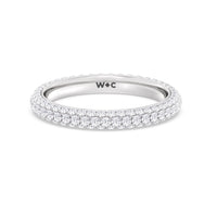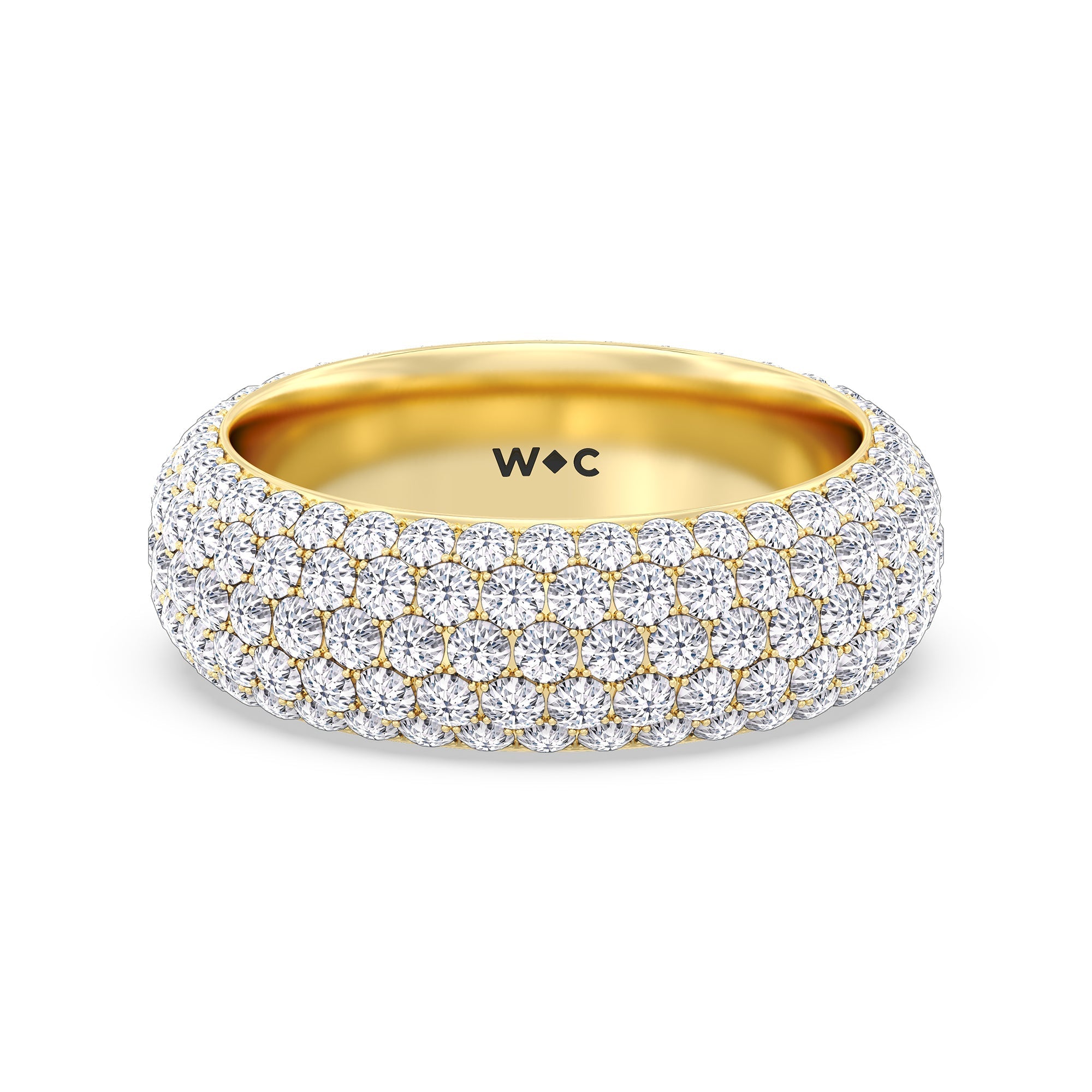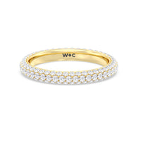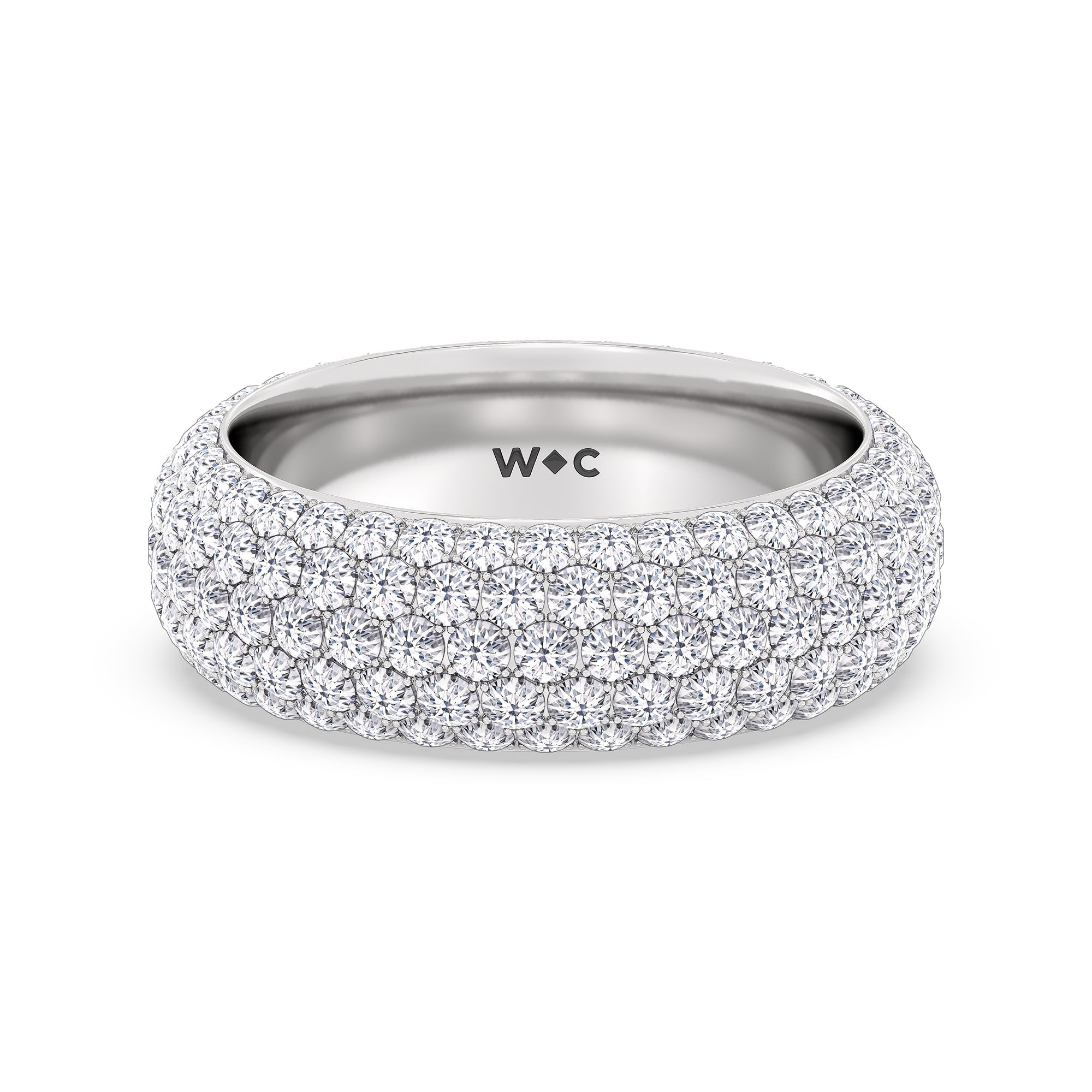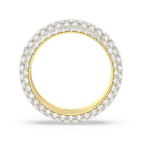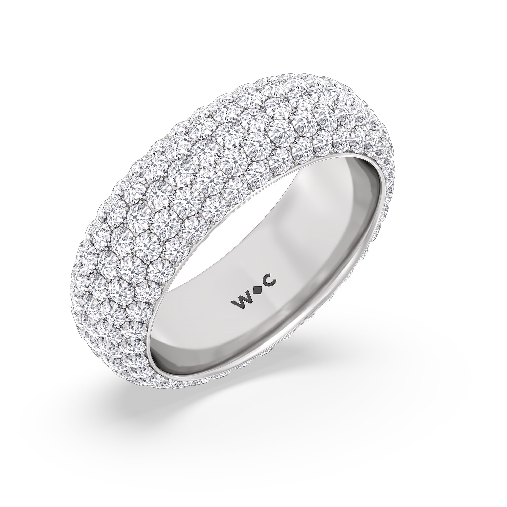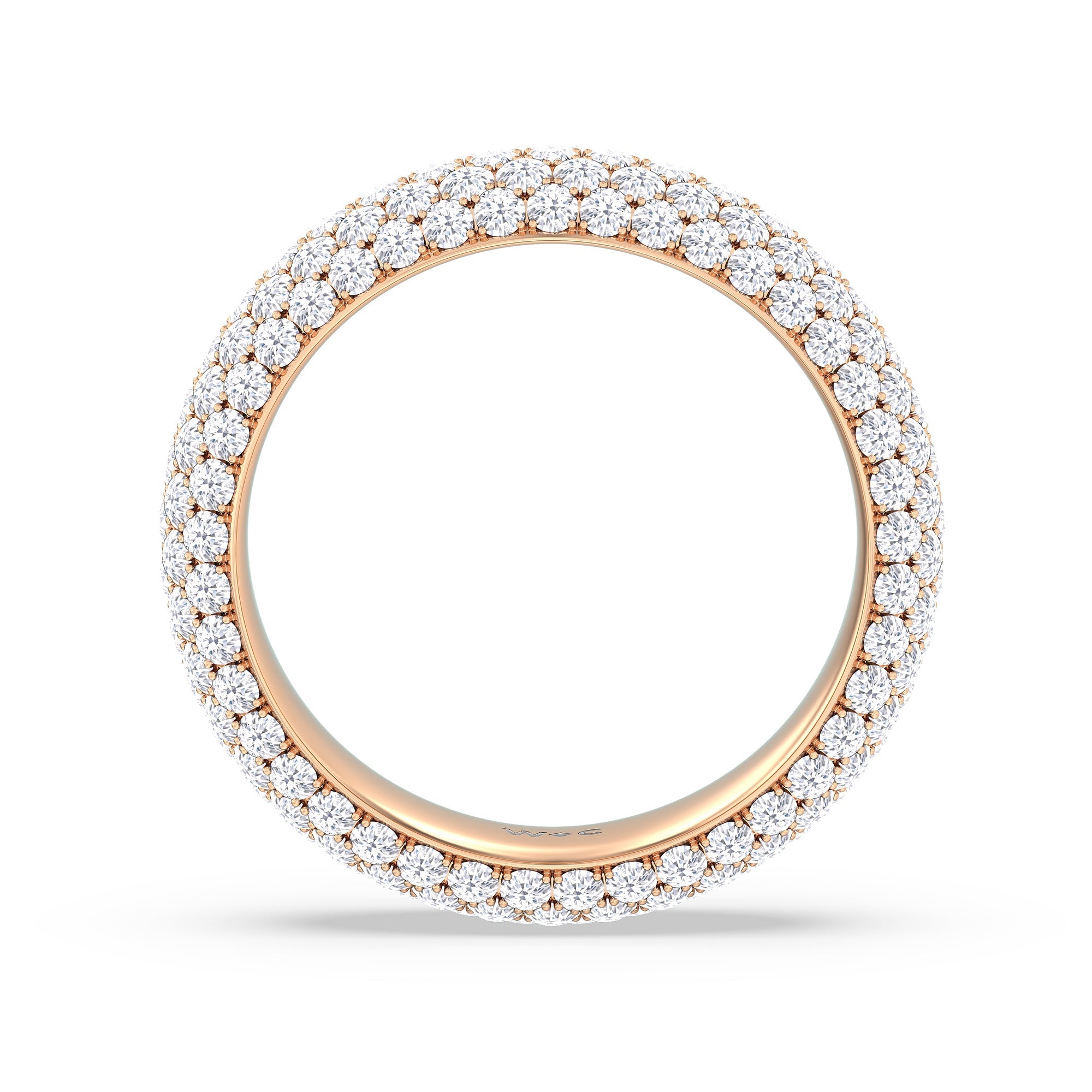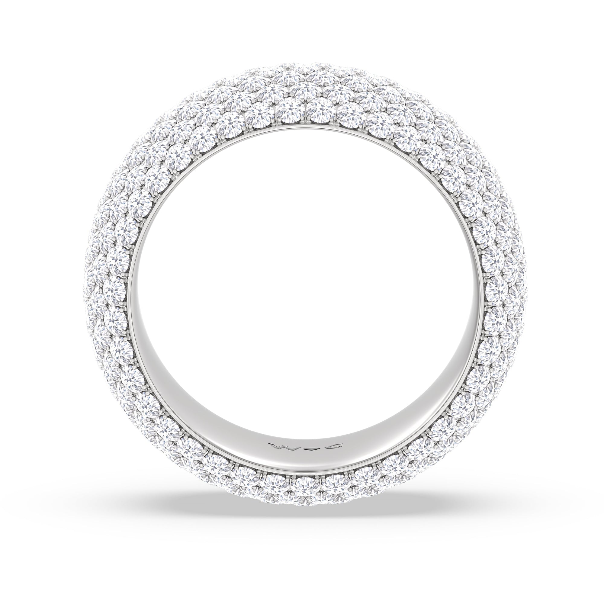 A powerfully elegant diamond eternity ring to gift to your special someone, or to yourself. The band has its entire circumference meticulously adorned with three rows of round diamonds in a pavé setting. It's the perfect ring to seal off any look, or to seal your love story.