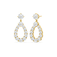 These diamond teardrop earrings will add instant glamour to any formal outfit you pair them with. Each earring features a round diamond on a post secured by a screw-back closure. It carries a fixed drop in pear or teardrop silhouette, traced by more round diamonds on shared prongs. With this on your jewelry box, it would be easier to give your dressy outfits an added dose of sophistication.
