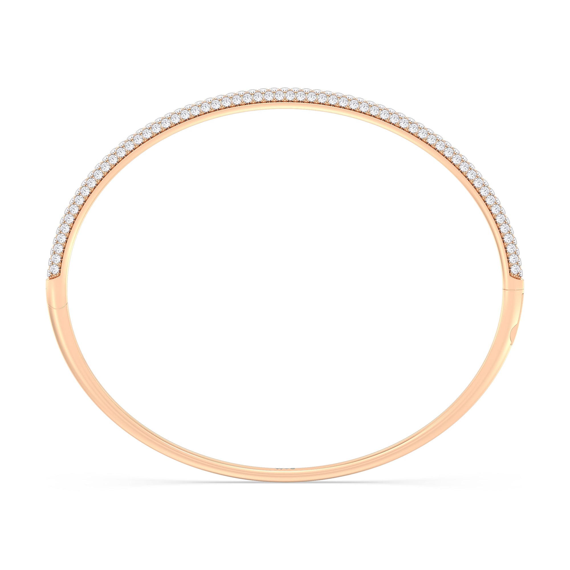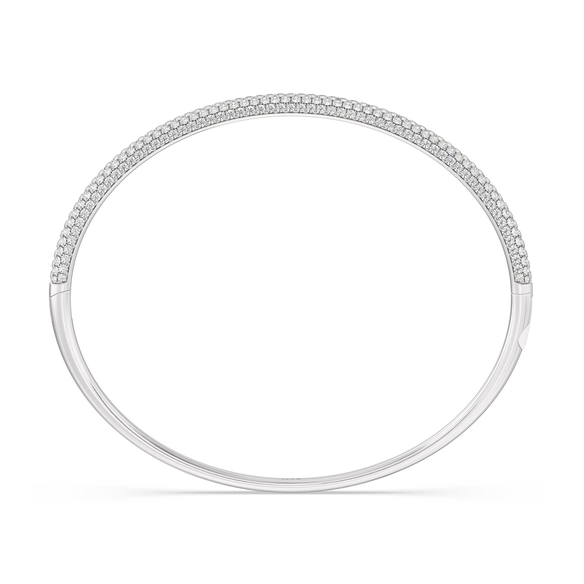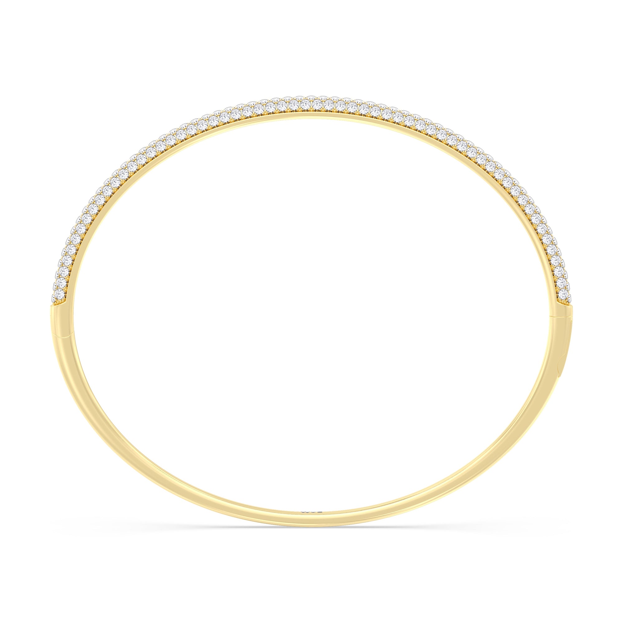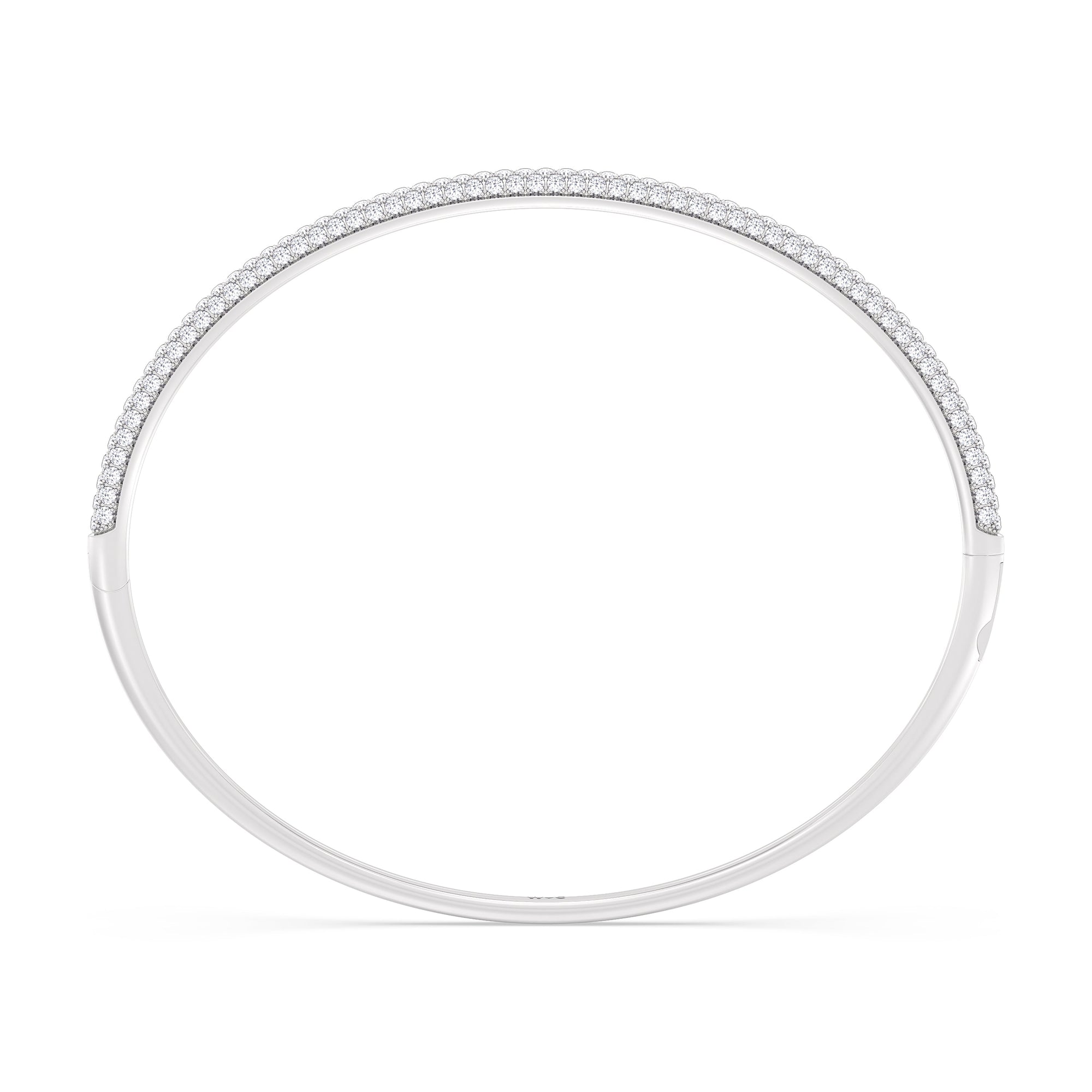 Make this diamond bangle a part of your daily style. It features three rows of pavé-set round diamonds tracing half of the oval bangle's circumference. The bangle is secured by a spring lock.