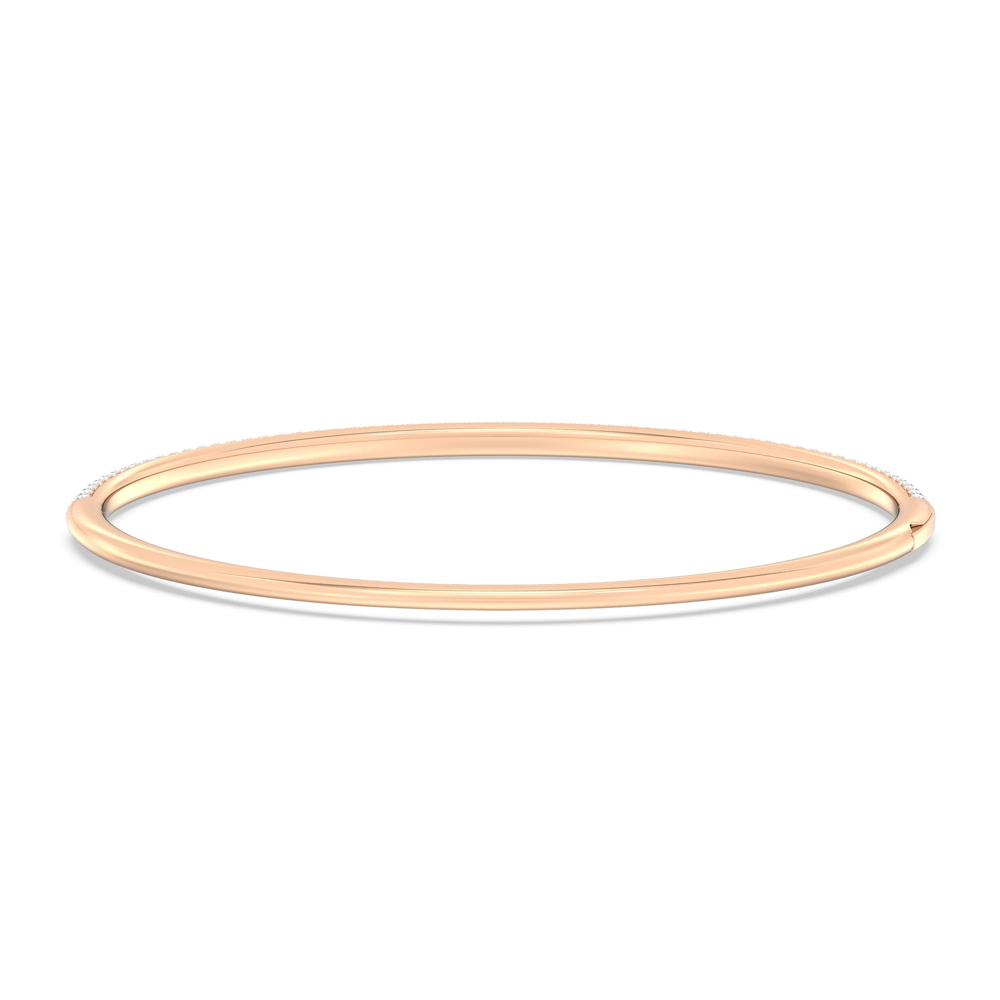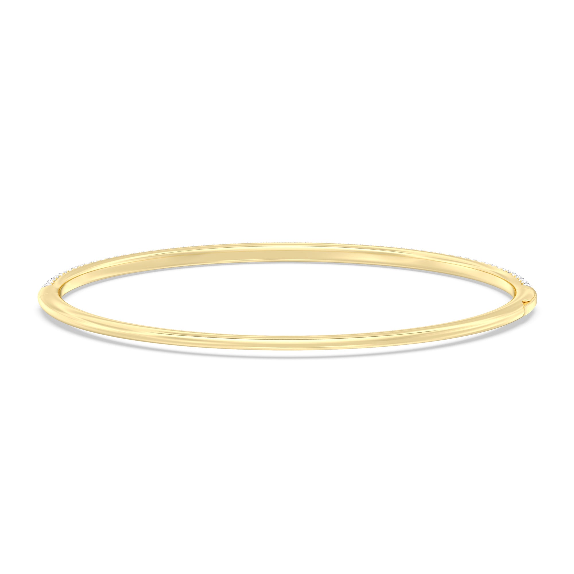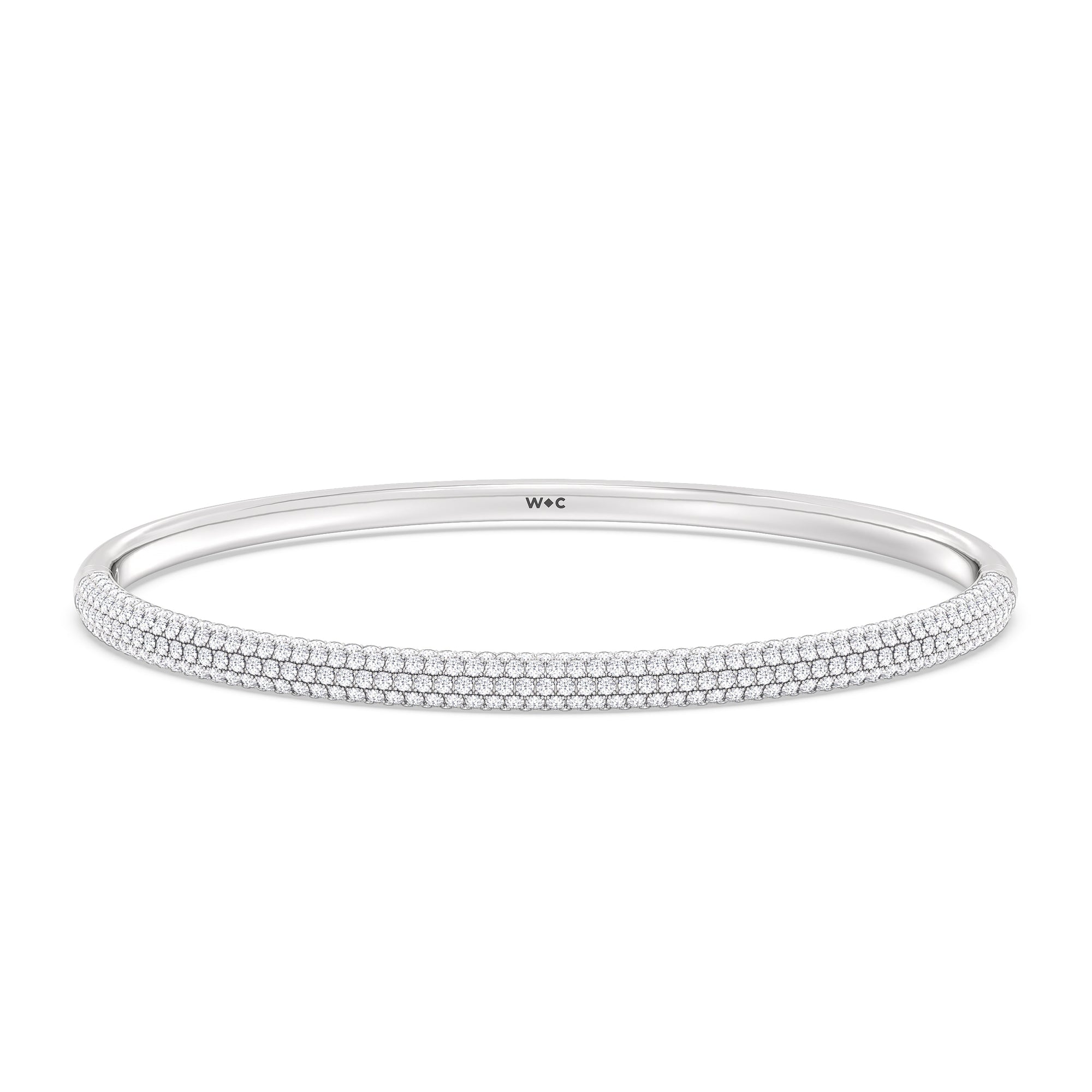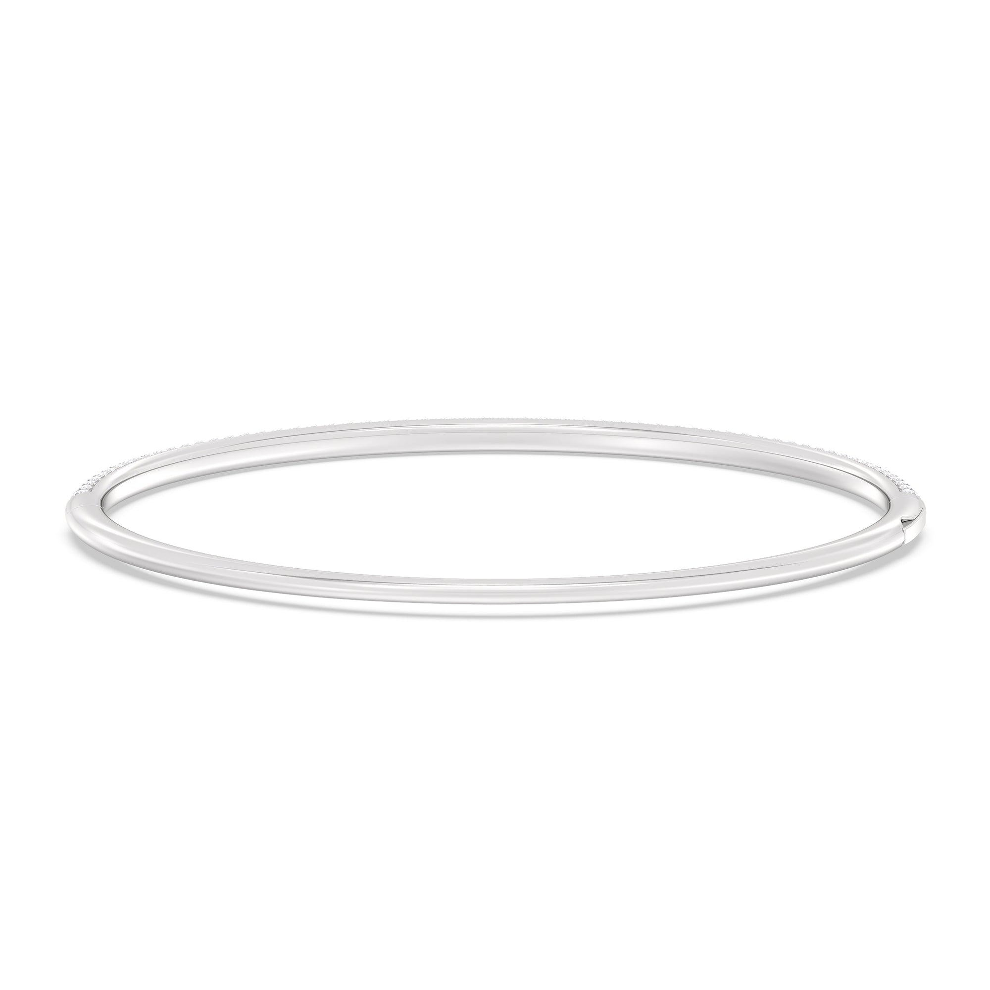Make this diamond bangle a part of your daily style. It features three rows of pavé-set round diamonds tracing half of the oval bangle's circumference. The bangle is secured by a spring lock.