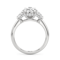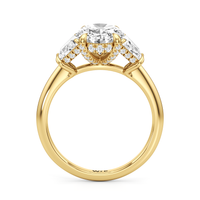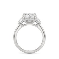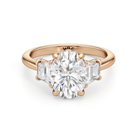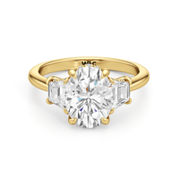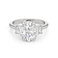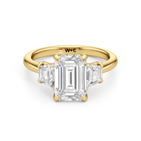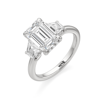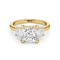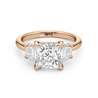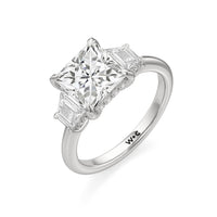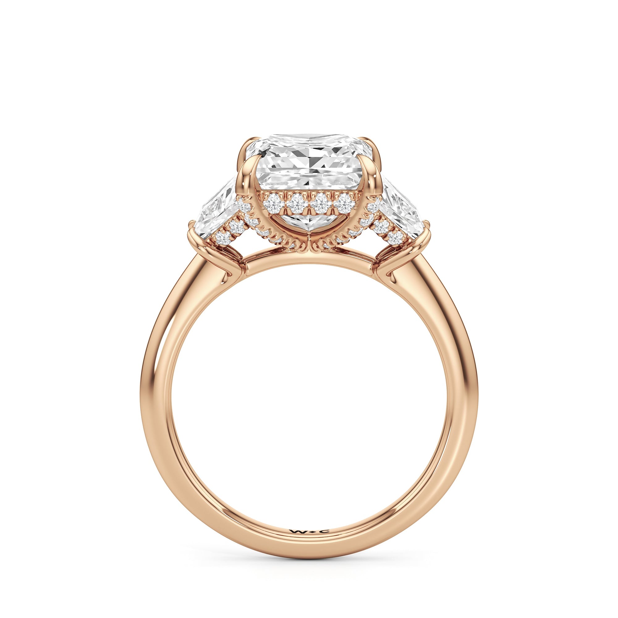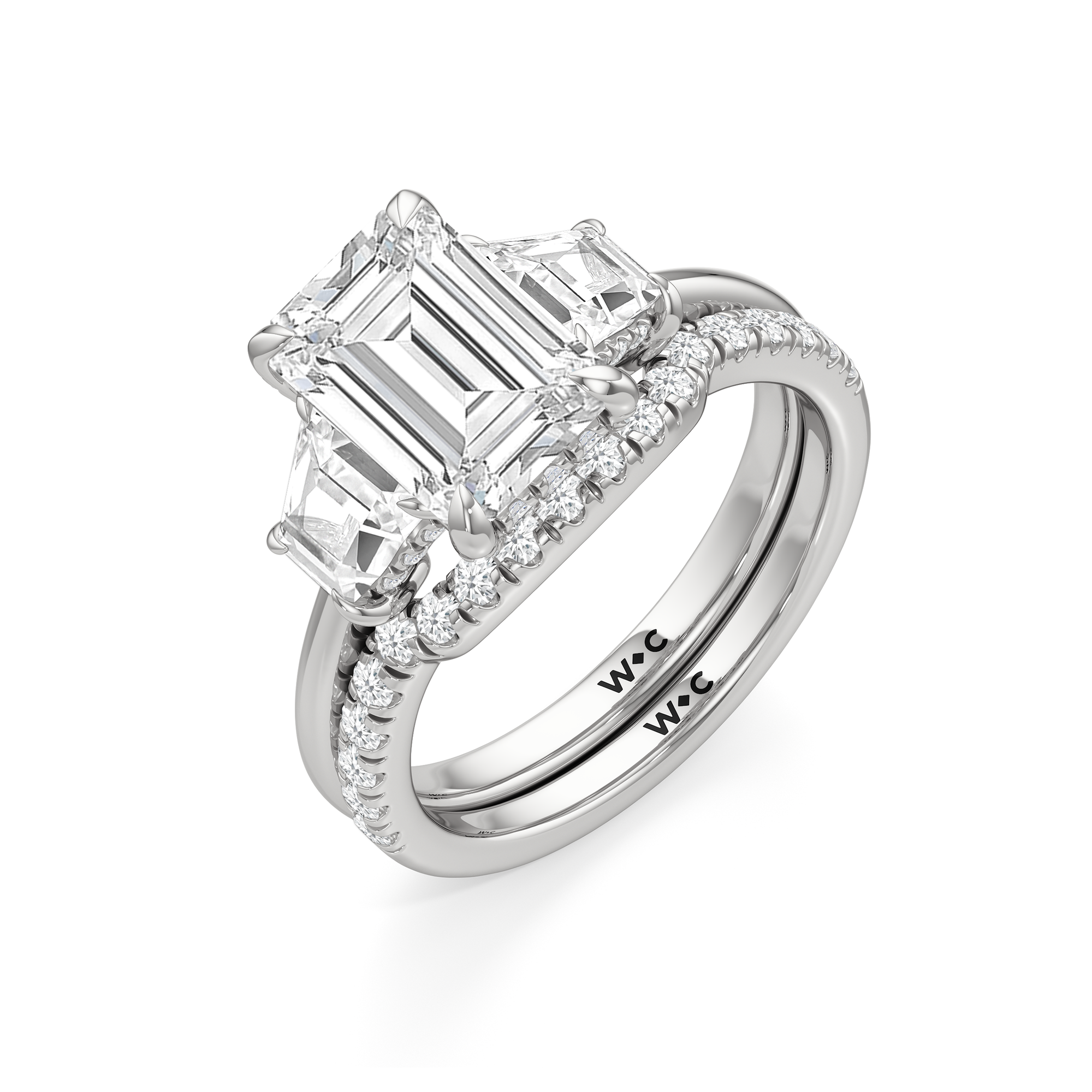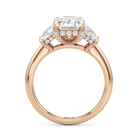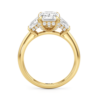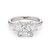 Gracefully accented with refined Trapezoid side diamonds, this ring exudes understated elegance and architectural brilliance. The clean lines and elongated facets of the side stones create a seamless flow of light, enhancing the ring’s sophisticated silhouette.