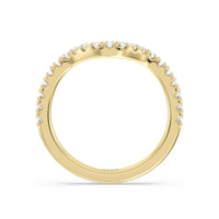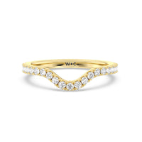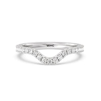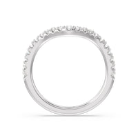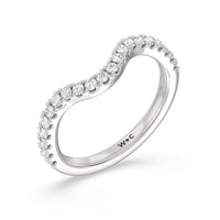 This curved diamond set wedding band is perfectly contoured to complement our elegance trillion diamond three stone engagement ring for a simple and sophisticated look.