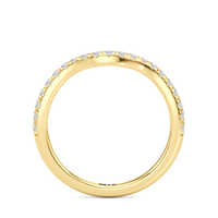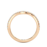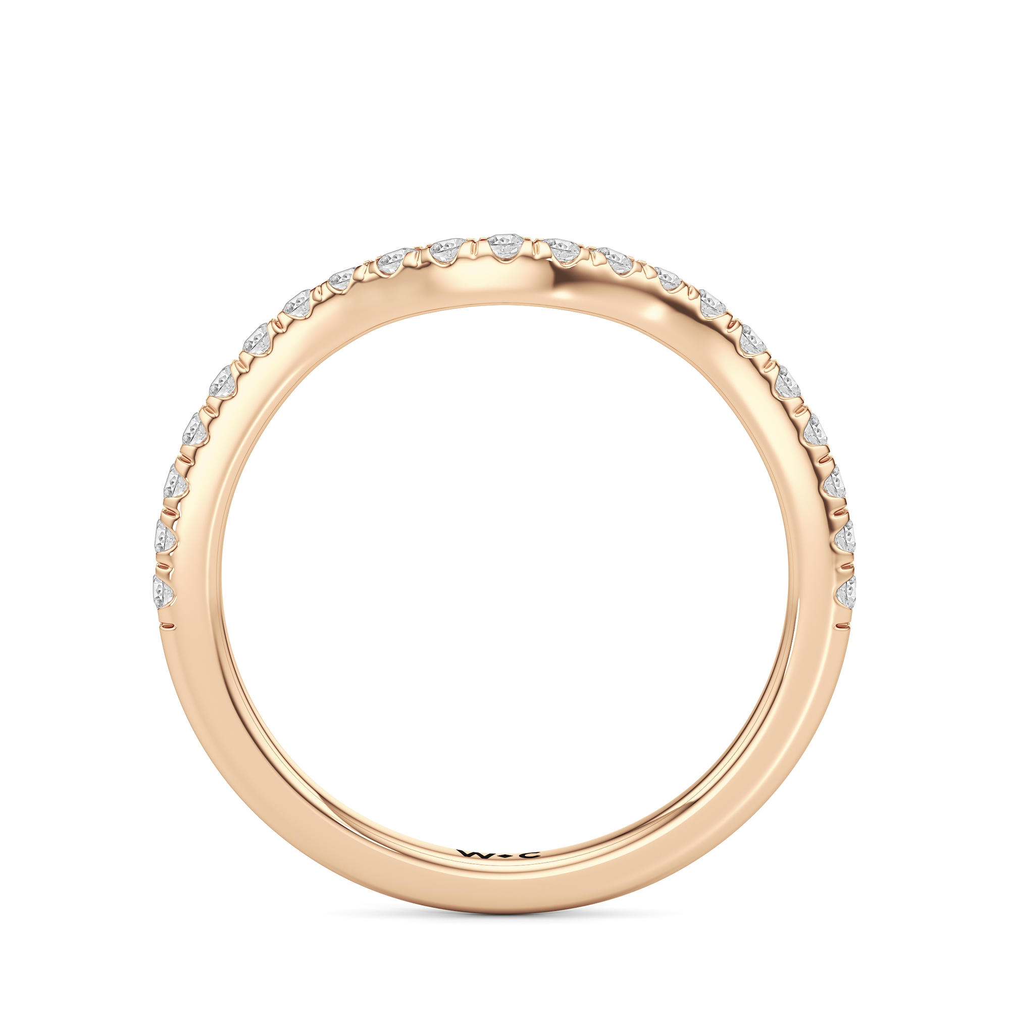 This curved diamond set wedding band is perfectly contoured to complement our elegance trillon side stone engagement ring for a simple and sophisticated look.