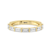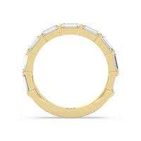 Shimmering pave diamonds cascade down this band to create a timeless beauty that will never go out of style. Designed to be paired with our elegance twin baguette side stone engagement ring for a simple and sophisticated look.