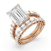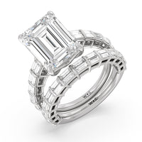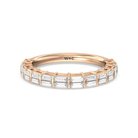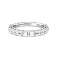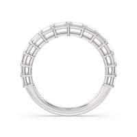 Shimmering pave diamonds cascade down this band to create a timeless beauty that will never go out of style. Designed to be paired with our two row baguette studded elegance engagement ring for a simple and sophisticated look.