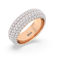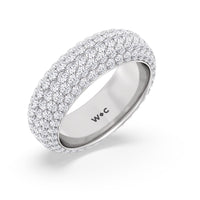 Designed to evoke romance, this eternity ring's dome shape harmonizes flawlessly with the brilliant sparkles of light that shine from the five rows of diamonds. This ring can easily be stacked with your engagement ring, or wear it alone; it is a wonder in itself.