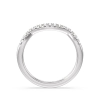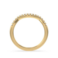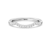 This curved diamond set wedding band is perfectly contoured to complement our elegant halo side stone accent solitaire engagement ring for a simple and sophisticated look.