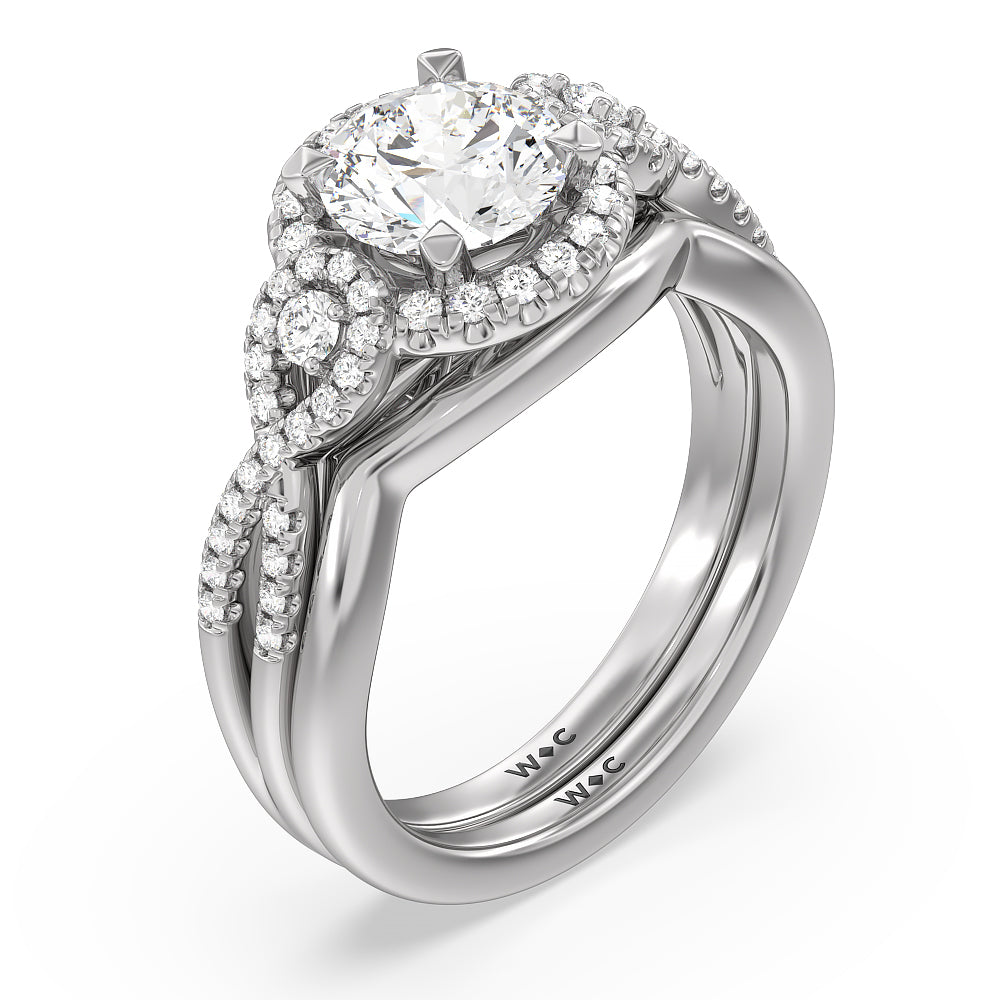 Elegant Halo Side Stone Accent Solitaire Wedding Band