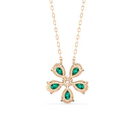 The Daisy Necklace captures the essence of feminine refinement and élan. This piece blooms with five pear-cut emerald petals surrounding a round center diamond. From the delicate floral motif, a subtle brilliance bursts forth like a breath of fresh air. This diamond necklace is the perfect graceful addition to your ensemble.