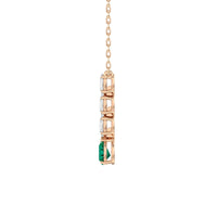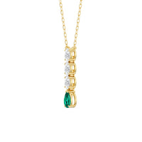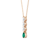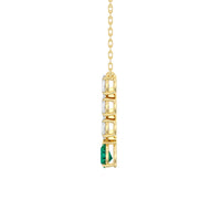 This emerald and diamond cluster necklace's design speaks of understated sophistication. It features a vertical layout of three oval diamonds and a pear-cut emerald. With combined brilliance, the linear diamond pendant offers a stunning sparkle that can effortlessly elevate any look.