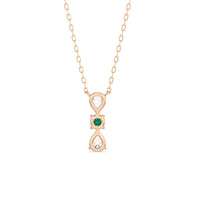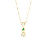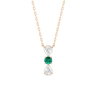 Let everyone know of your refined style through this emerald and diamond necklace. It carries three diamonds mounted in a vertical layout, with round emerald set in between two pear diamonds. Its less-is-more design goes beyond fleeting trends, making this necklace a timeless sparkler that will endure for a long time.
