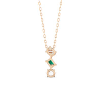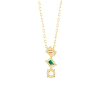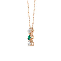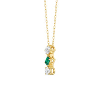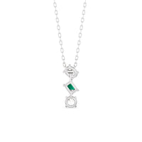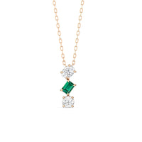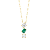 This emerald and diamond trilogy necklace embraces modern elegance with its minimalist aesthetic. It features a vertical row of created emerald,oval and round diamonds, Designed with no distracting embellishments, this necklace's pure beauty shines.
