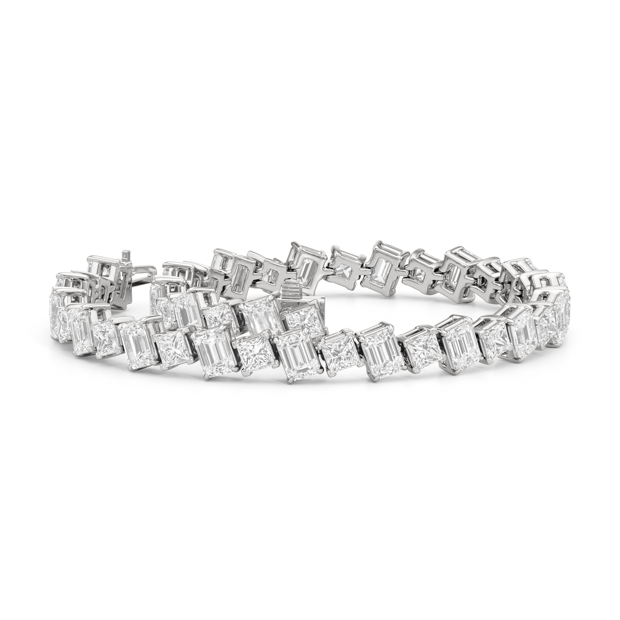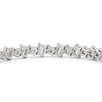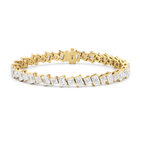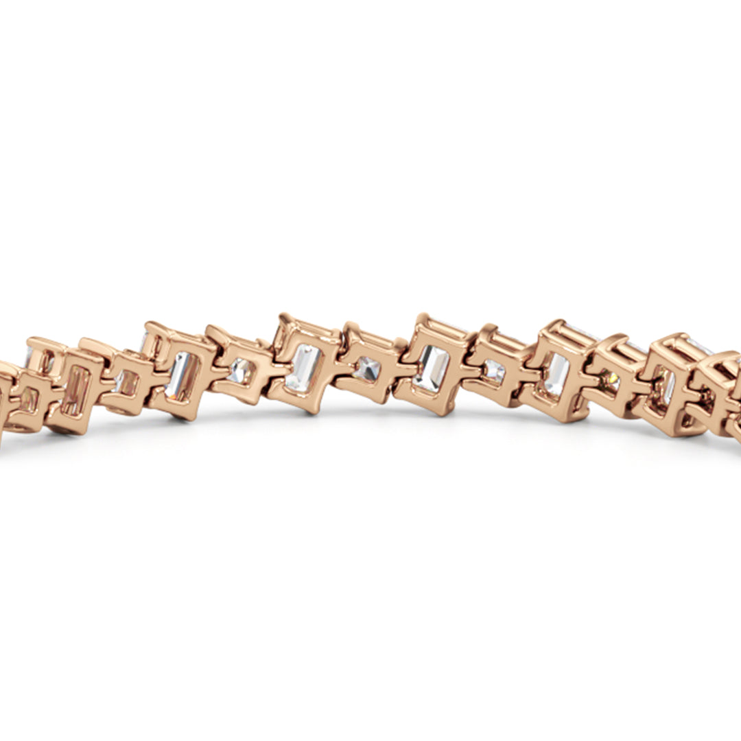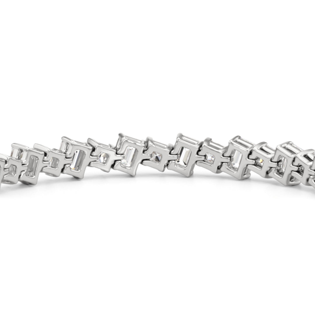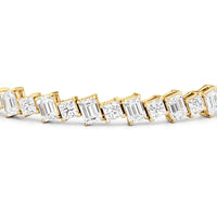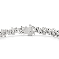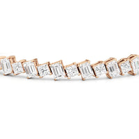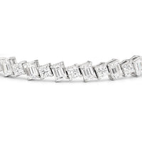 With remarkable brilliance, this diamond bracelet makes a loud and clear statement of eternal love. This breathtaking piece features emerald-cut diamonds and princess-cut diamonds arranged alternately and set in a diagonal pattern for a fluid and modern look.