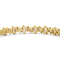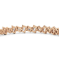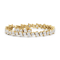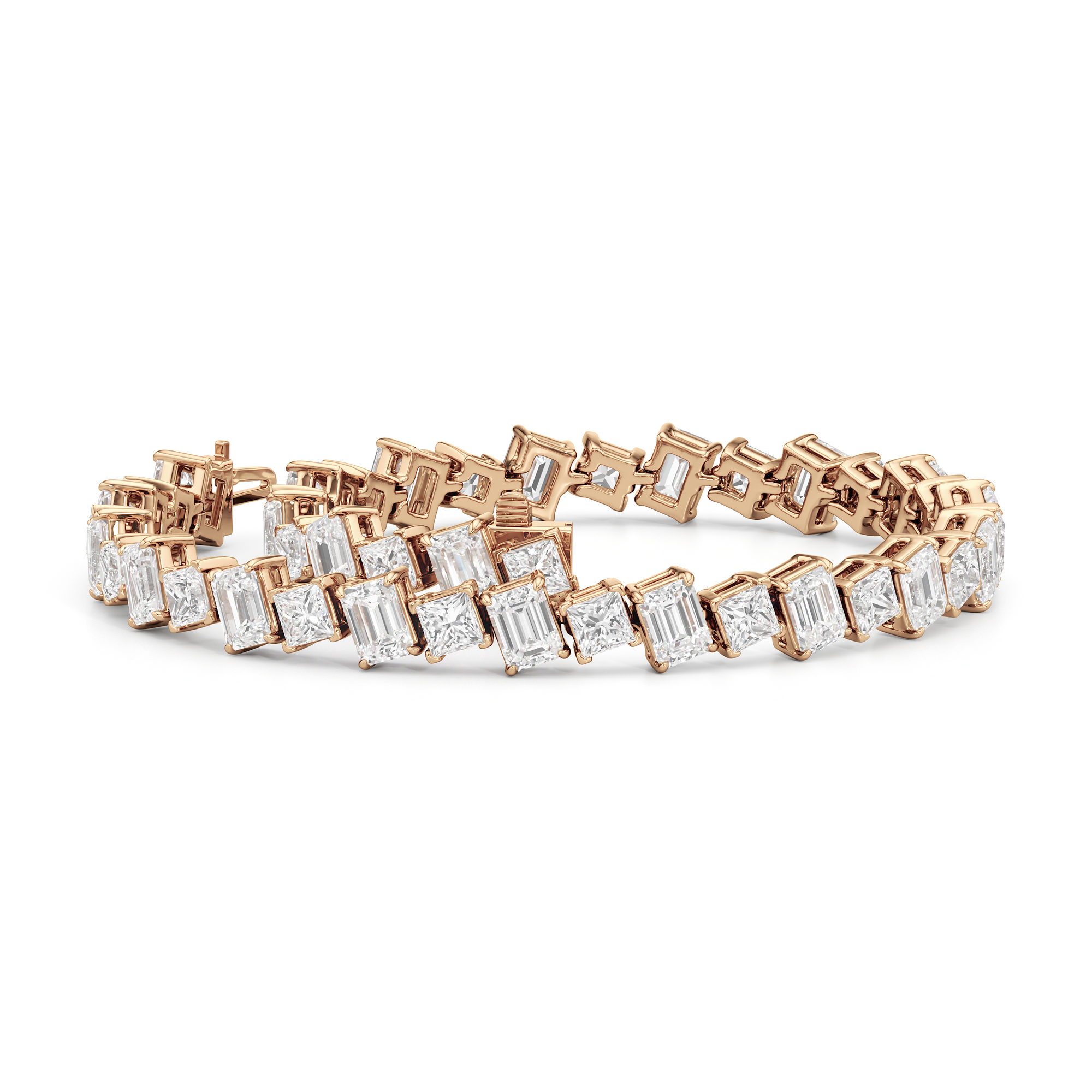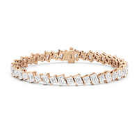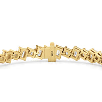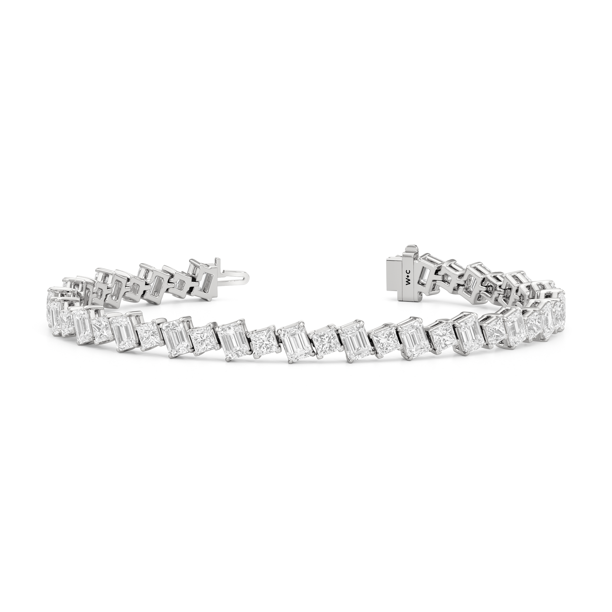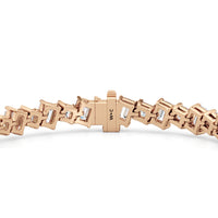 With remarkable brilliance, this diamond bracelet makes a loud and clear statement of eternal love. This breathtaking piece features emerald-cut diamonds and princess-cut diamonds arranged alternately and set in a diagonal pattern for a fluid and modern look.