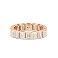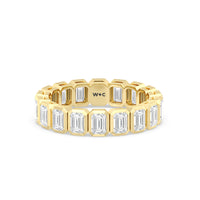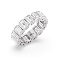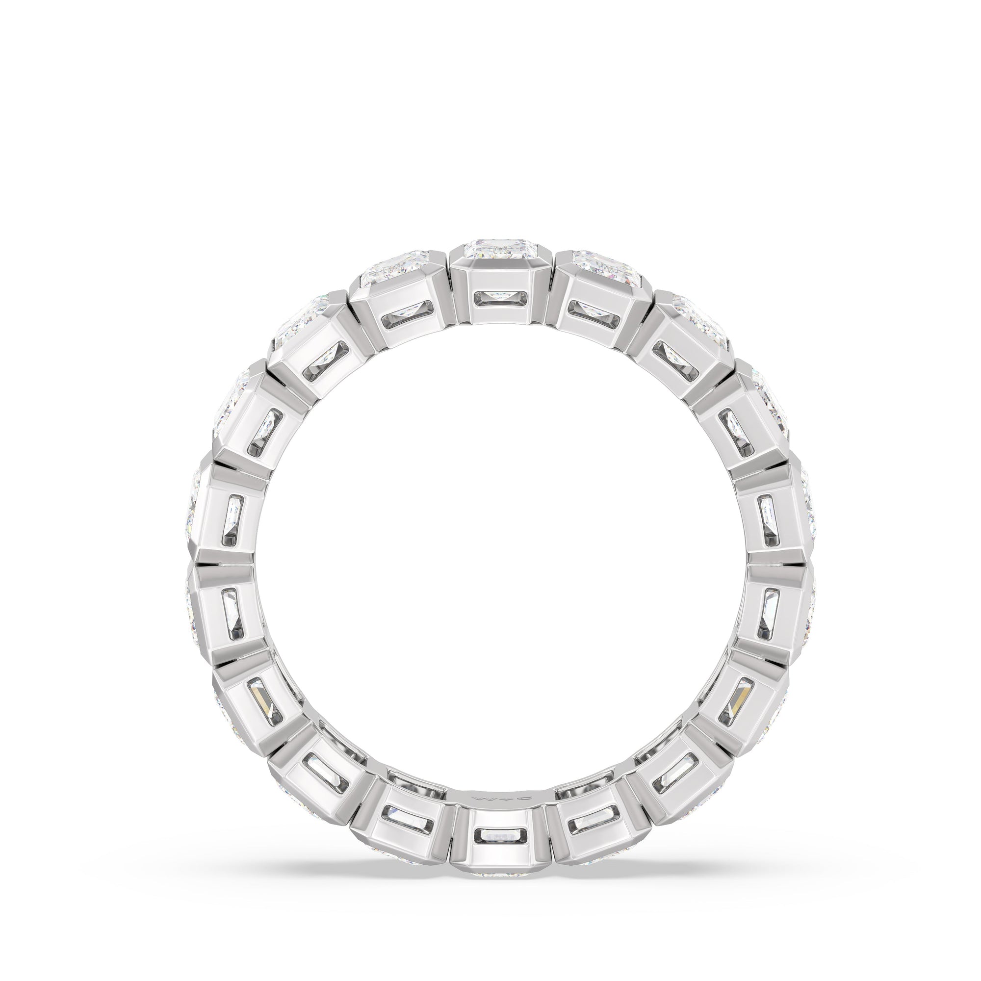 Modern and sleek, this eternity ring adds an unforgettable touch. The emerald shape accentuates the size of each diamond, creating an impactful look. The bezel setting allows for smooth, comfortable all day wear.