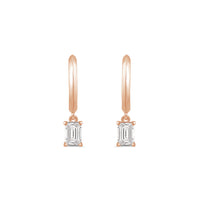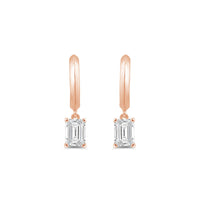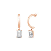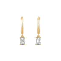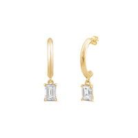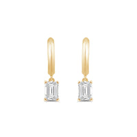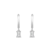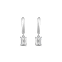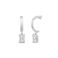 A dazzling pair of diamond drops to pull your look together. These white gold huggies feature a knife-edge design with an emerald-cut diamond drop that holds big appeal. The earrings offer a look that is minimal yet still eye-catching.