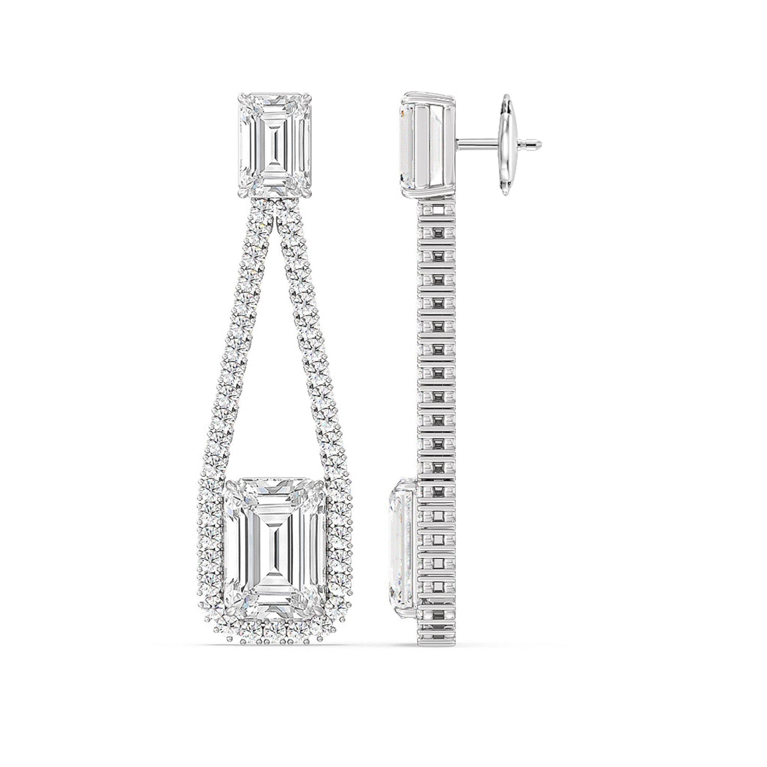 Elevate your look, celebrate luxury, and embrace the timeless beauty of our Statement Dangle Earrings with 15cts of Emerald and Round diamond earring. Whether you're searching for a remarkable gift or a magnificent addition to your jewelry collection, these earrings will become your signature piece. Get ready to shine and make a lasting impact, turning heads with your unmatched style and sophistication.