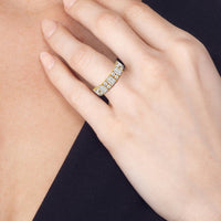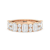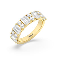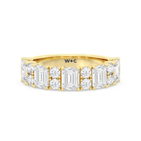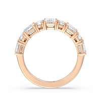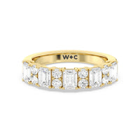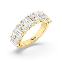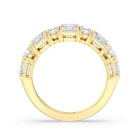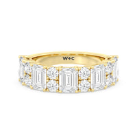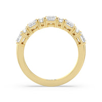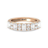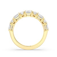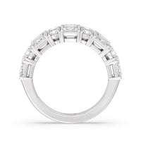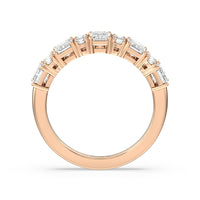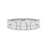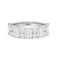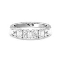 Relive the moment that changed your life forever with this sophisticated diamond anniversary band. This diamond ring features emerald-cut diamonds set in stations halfway around the ring. The elongated diamonds display striking flashes of light that stand out against the polished band.