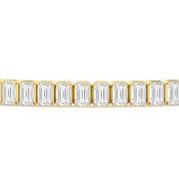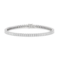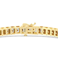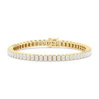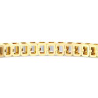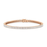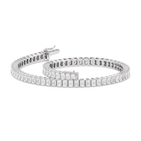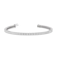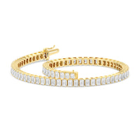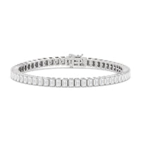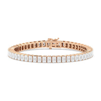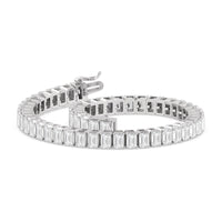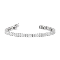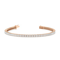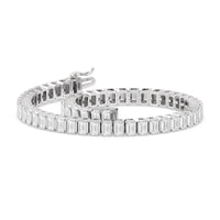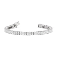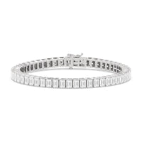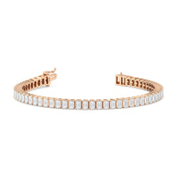 Versatile and chic to be layered or worn on its own. This design features emerald-cut diamonds mounted vertically on secure pronged baskets. Elegant and extremely wearable, this bracelet complements any style.