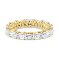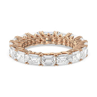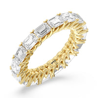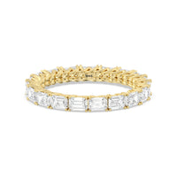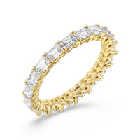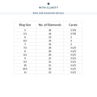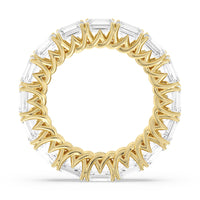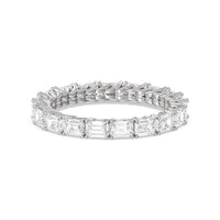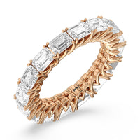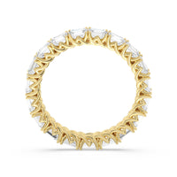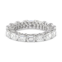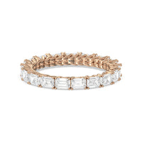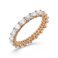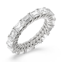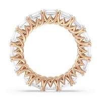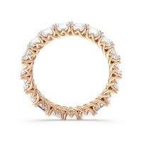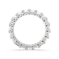Beautiful trellis prongs form a gallery that elevates each stone to give this Eternity ring a beautiful sparkle. The stone setting lets all the diamonds get enough play of light for an unmatched brilliance that is sure to catch second looks and admiration for your impeccable choice.
