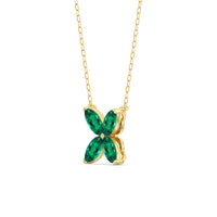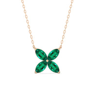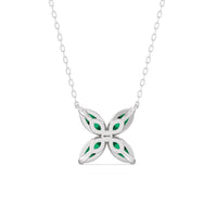 The Wildflower Necklace captures a blend of mystery, simplicity, and sophistication. It presents four emerald marquise chosen for their radiance and superlative quality, forming the shape of a delicate bluet. The elongated silhouette of each emerald marquise gracefully reflects and refracts light, creating a bold brilliance.
