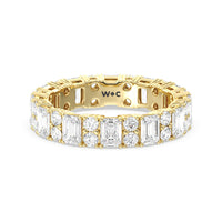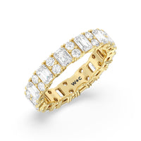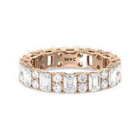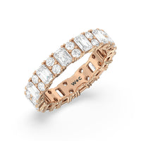An incredibly sparkly ring that will surely turn heads. This eternity ring features a continuous row of alternating oval and round diamonds. It is the perfect representation of how your love shines bright amidst the turns and twists in life.
