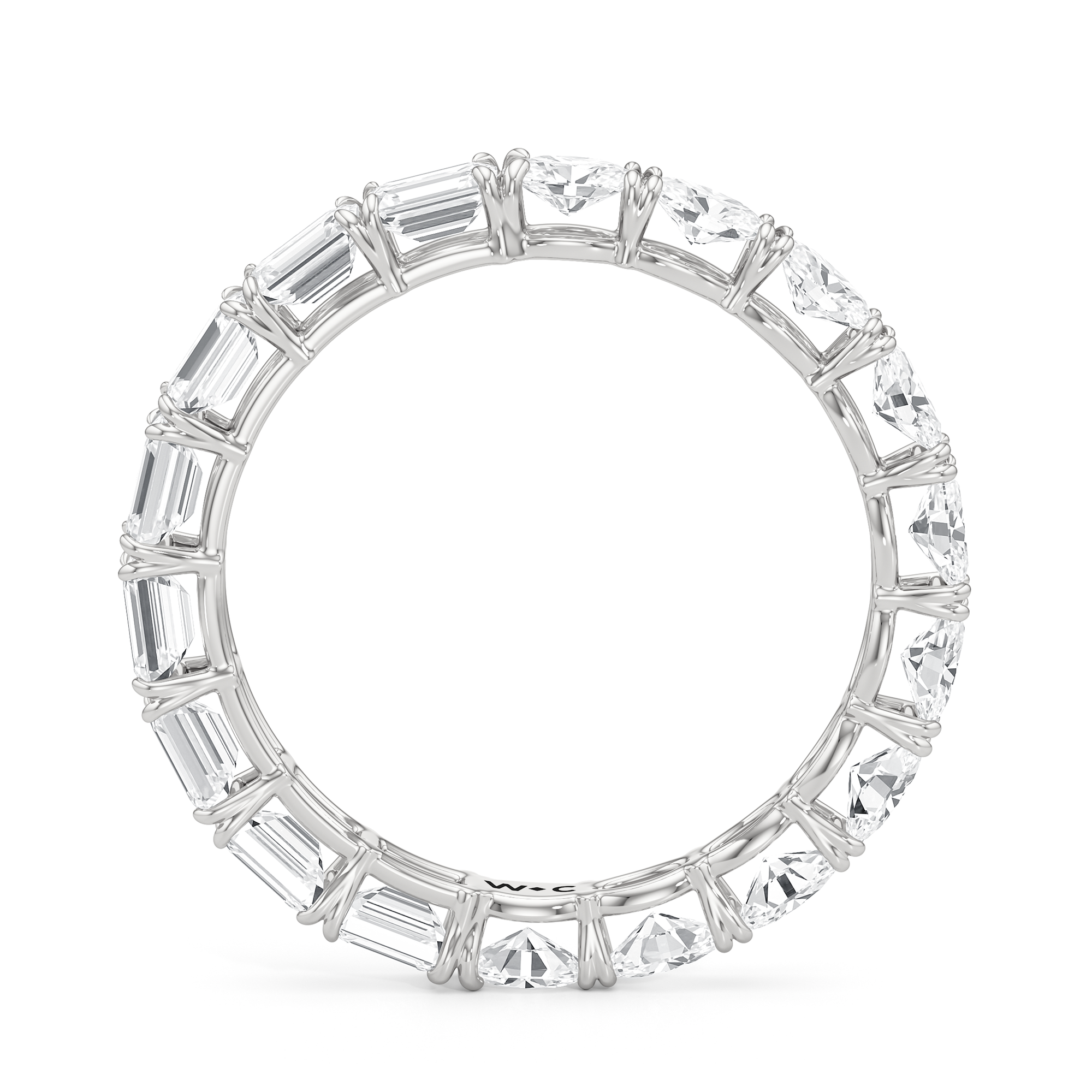Equinox shows composure in contrast. The ring pairs oval diamonds in an east-west setting with emerald cuts in a seamless half-and-half design. Balanced yet unexpected, this eternity band offers two perspectives in perfect alignment. Designed to shift with your mood, style, or orbit.