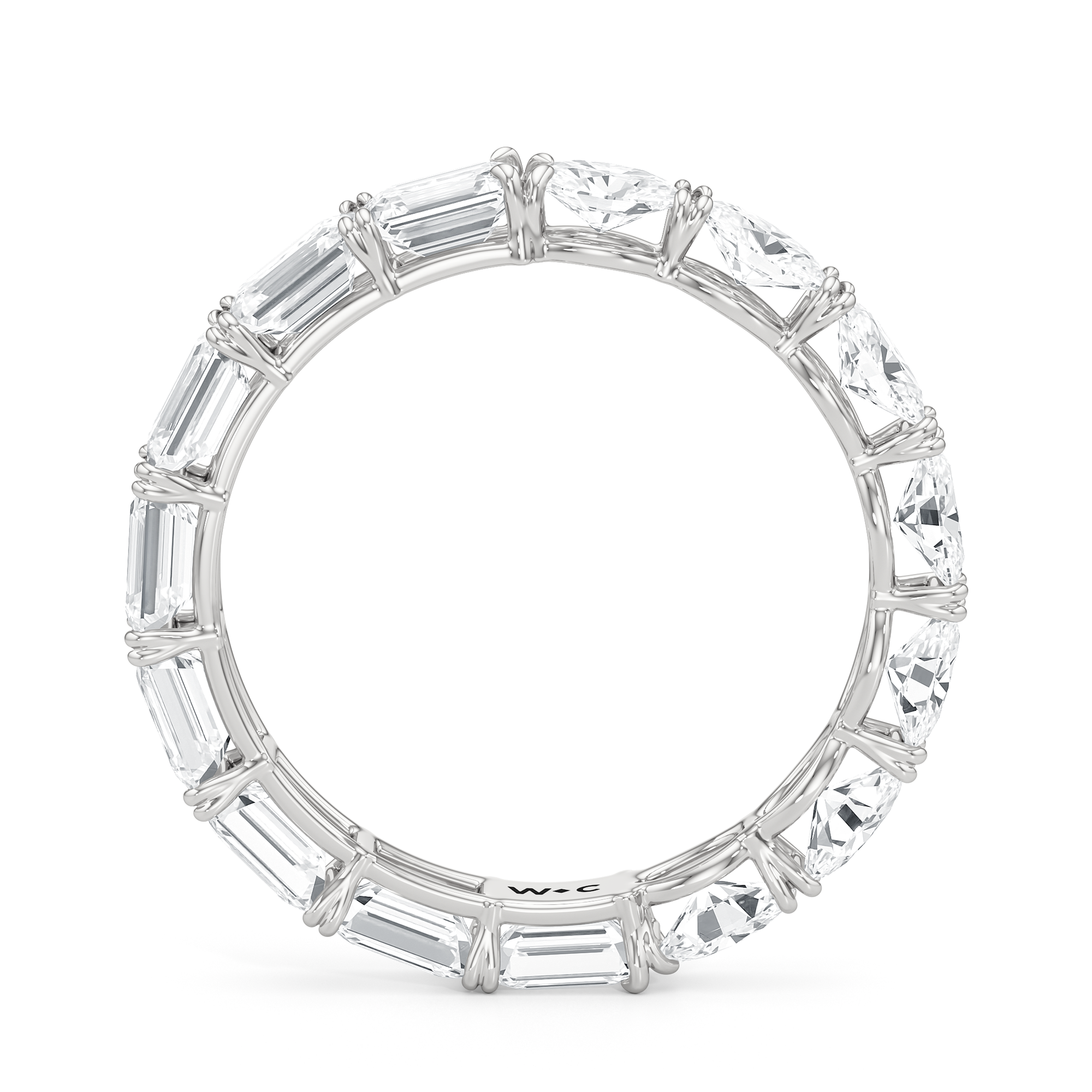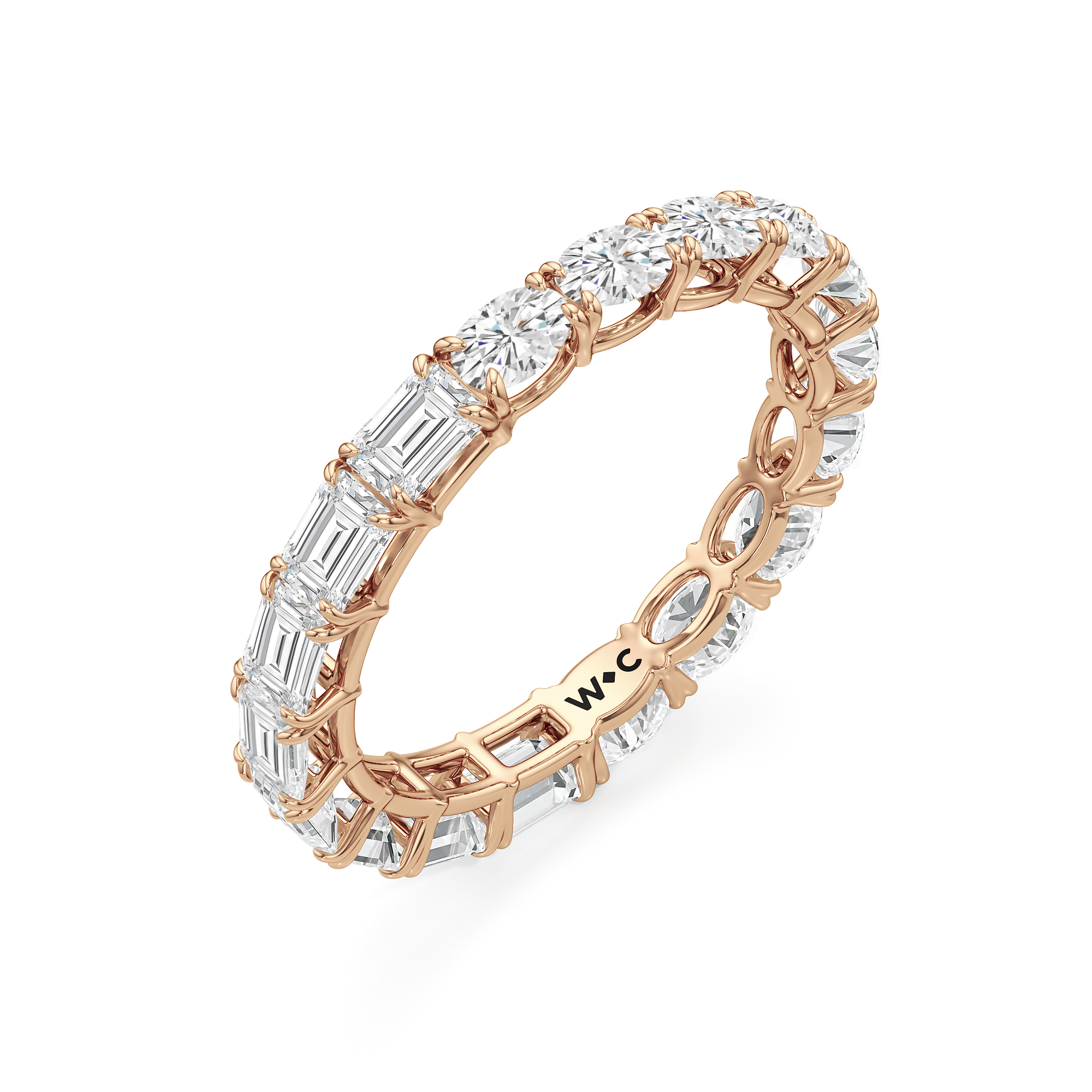 Equinox shows composure in contrast. The ring pairs oval diamonds in an east-west setting with emerald cuts in a seamless half-and-half design. Balanced yet unexpected, this eternity band offers two perspectives in perfect alignment. Designed to shift with your mood, style, or orbit.