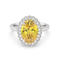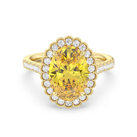 This Oval Fancy Intense Yellow Halo Ring is an excellent choice for those who appreciate the beauty of colored diamonds and want to make a bold and captivating statement. Whether you're seeking a remarkable piece of fine jewelry or a unique gift, this ring will become a symbol of your exceptional taste and style. Embrace the radiance and allure of Fancy Intense Yellow diamonds and let your personality shine through this exquisite ring.