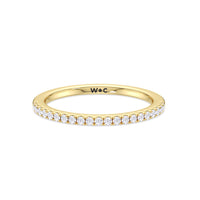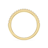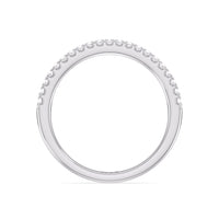 Shimmering pave diamonds cascade down this band to create a timeless beauty that will never go out of style. Designed to be paired with our fine chevron hidden halo engagement ring for a simple and sophisticated look.