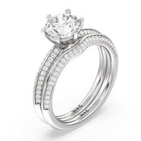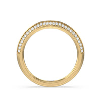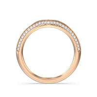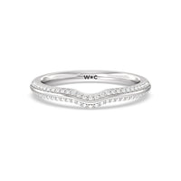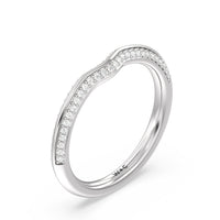 This curved fine line diamond set wedding band is perfectly designed to complement our fine line 6 claw knife edge engagement ring style for a modern and sophisticated look.