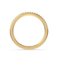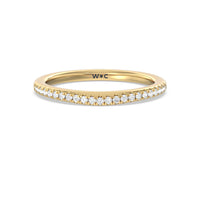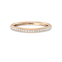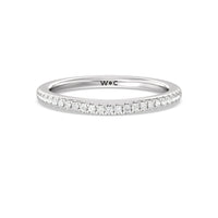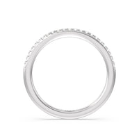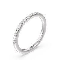 This fine line diamond set wedding band is perfectly shaped to complement our fine line pave engagement ring style for a simple and sophisticated look.